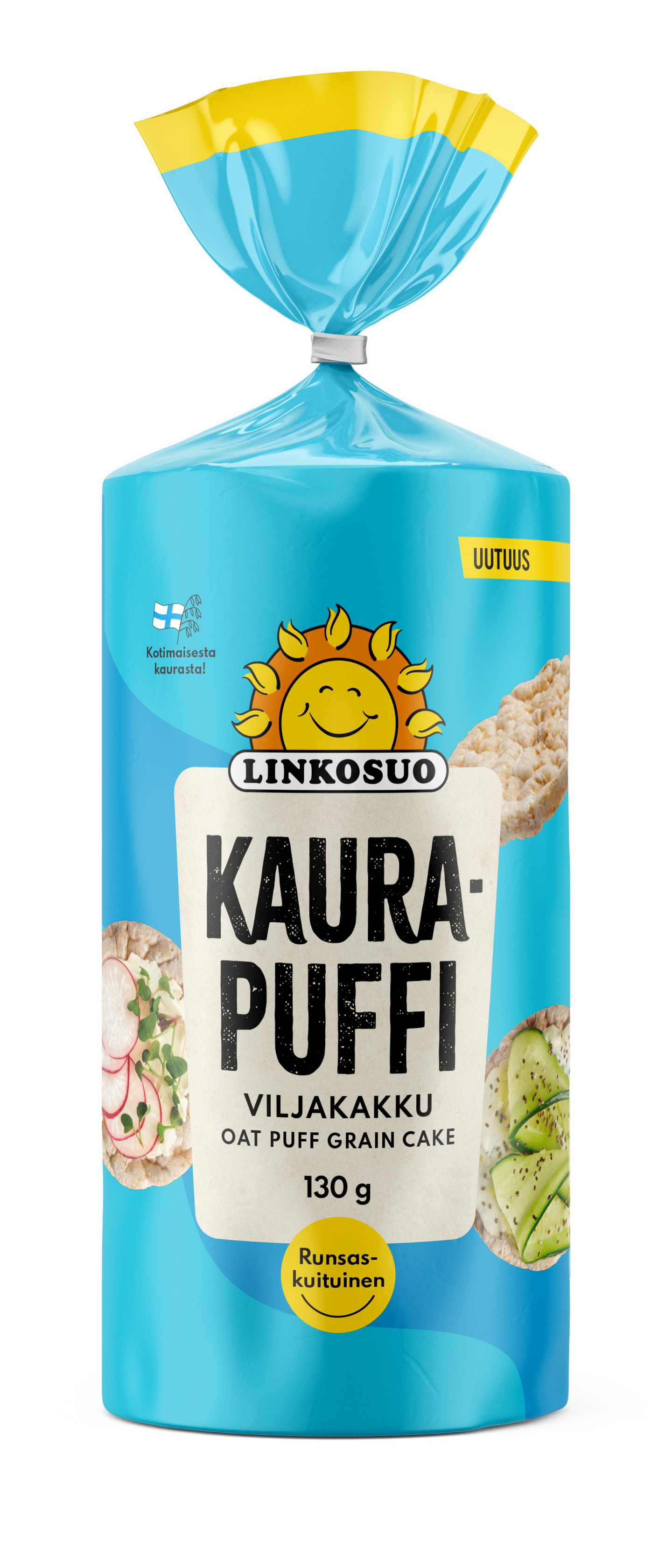 VegaaninenPuffisti makua ja rousketta! Lempeän kaurainen välipala on sutjakan ohut, mutta makua on Linkosuon tapaan isosti ja kuitua runsaasti.