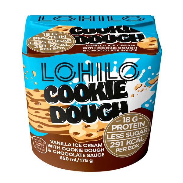 LaktoositonVaniljanmakuista proteiinijäätelöä, jonka seassa mehevää keksitaikinaa ja suklaakastiketta, laktoositon. Lohilo proteiinijäätelöt sopivat niin välipalaksi kuin herkutteluunkin. Vähemmän sokeria, enemmän proteiinia, herkullisesta mausta ja pehmeästä koostumuksesta tinkimättä.