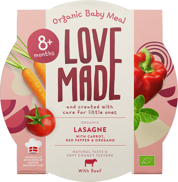 Omistautuneiden vanhempien ja Michelin-tähtikokin Tanskassa perustama LoveMade on luotu sitoutuen huolenpitoon. Meidän Luomu vauvanruokamme on kehitetty yhdistämällä mahtavat maut, luonnolliset rakenteet ja hyvä ravitsemuksellinen laatu pienokaistemme parhaaksi. Yksinkertaista. Mitään muuta ei ole lisätty, paitsi rakkautta. Hyvää ruokahalua!