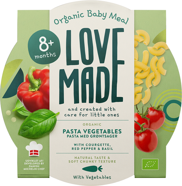 Omistautuneiden vanhempien ja Michelin-tähtikokin Tanskassa perustama LoveMade on luotu sitoutuen huolenpitoon. Meidän Luomu vauvanruokamme on kehitetty yhdistämällä mahtavat maut, luonnolliset rakenteet ja hyvä ravitsemuksellinen laatu pienokaistemme parhaaksi. Yksinkertaista. Mitään muuta ei ole lisätty, paitsi rakkautta. Hyvää ruokahalua!