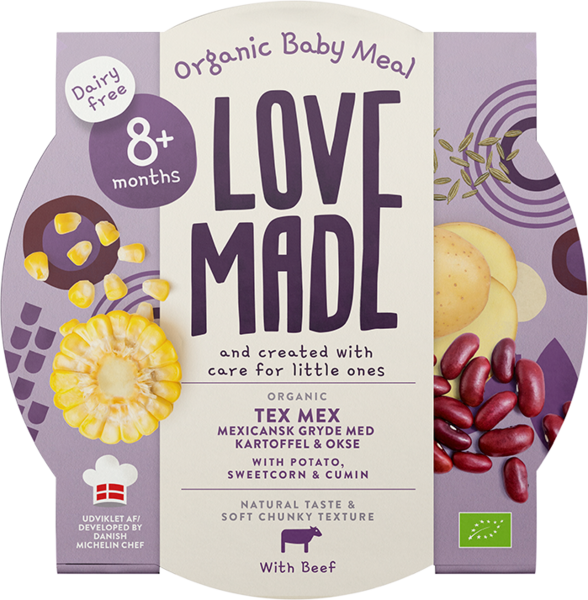 Omistautuneiden vanhempien ja Michelin-tähtikokin Tanskassa perustama LoveMade on luotu sitoutuen huolenpitoon. Meidän Luomu vauvanruokamme on kehitetty yhdistämällä mahtavat maut, luonnolliset rakenteet ja hyvä ravitsemuksellinen laatu pienokaistemme parhaaksi. Yksinkertaista. Mitään muuta ei ole lisätty, paitsi rakkautta. Hyvää ruokahalua!
