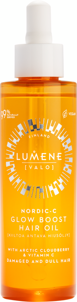 LUMENE Nordic-C [Valo] Kiiltoa antava hiusöljy on suunniteltu antamaan hiuksille välitöntä kiiltoa, sekä vähentämään niiden pörröisyyttä ja silottamaan kaksihaaraisia. Kevyt, ravitseva ja nopeasti imeytyvä koostumus ei jätä hiuksia raskaan tai rasvaisen tuntuisiksi.