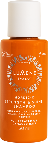 LUMENE Nordic-C [Valo] Vahvistava & kiiltoa antava shampoo auttaa hoitamaan hiuksia ja hiuspohjaa pohjoisen lakan, C-vitamiinin ja kasvipohjaisen proteiinin avulla tehden hiuksista hyvinvoivan ja kiiltävän näköiset. Kehitetty vahvistamaan, korjaamaan ja ehkäisemään hiusten katkeilua.