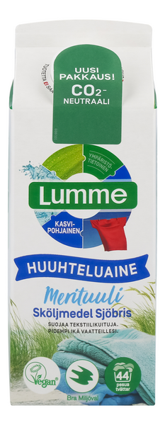 Lumme Huuhteluaine Merituuli suojaa tekstiilikuituja ja antaa pidemmän iän vaatteillesi. Tuotteessa on pehmeä ja miellyttävä merellinen tuoksu. Lumme-tuotteilla saat tehokasta puhtautta ympäristötietoisesti. Lumme-tuotteet sisältävät vain huolella valittuja ainesosia ympäristö huomioon ottaen. Lumme Huuhteluaine Merituuli täyttää Ruotsin luonnonsuojeluliiton korkeat ympäristövaatimukset ja on ympäristömerkitty Bra Miljöval -ympäristömerkillä. Kasvipohjainen - vegaani merkitty. Yhdestä pakkauksesta riittää 44 pesukertaan. Tuote on pakattu hiilineutraaliin kartonkipakkaukseen. Kierrätä pakkaus korkkeineen kartonkina.