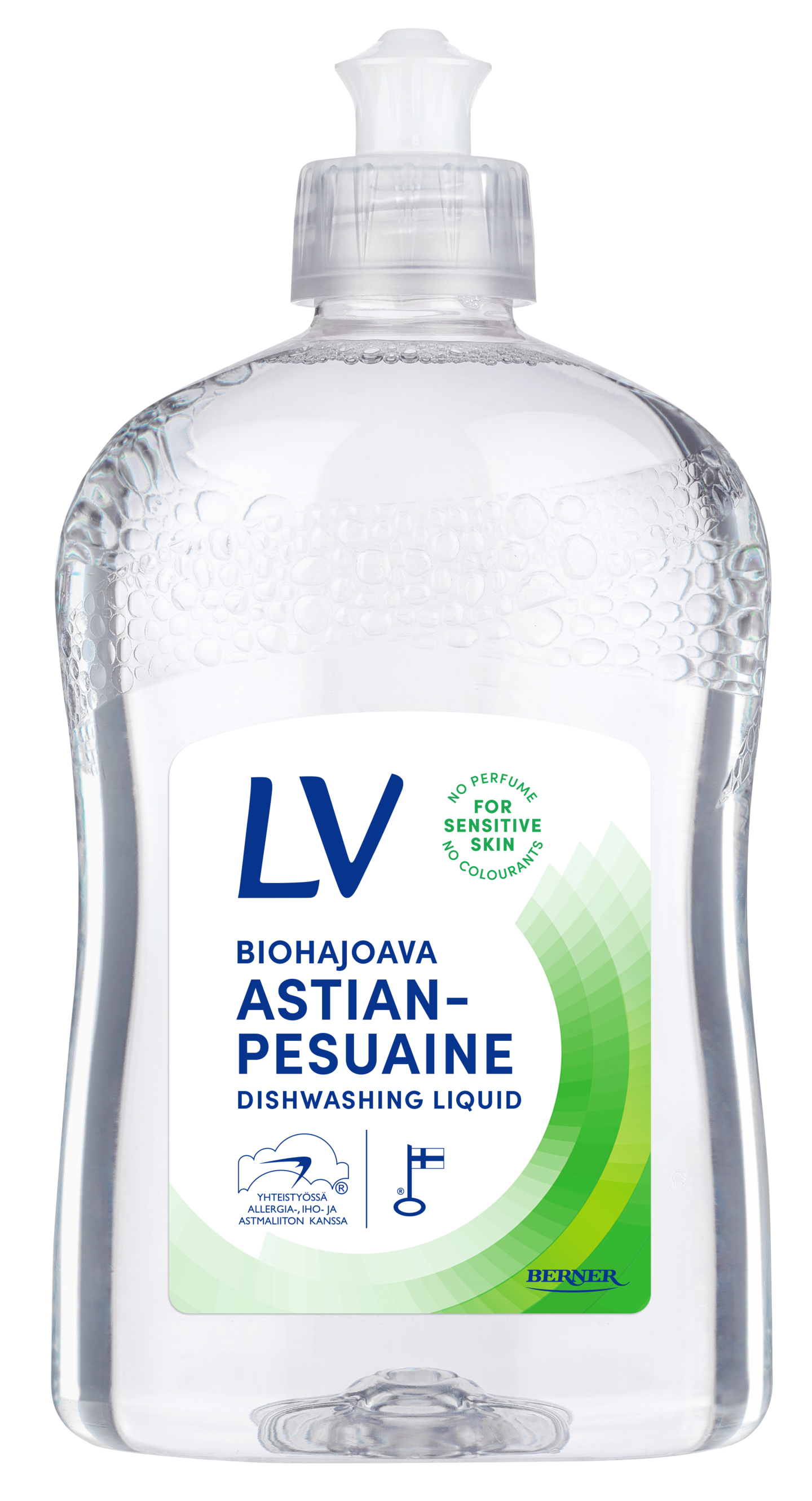 Hajusteeton ja väriaineeton astianpesuaine puhdistaa astiat tehokkaasti. Herkälle iholle sopiva astianpesuaine on myös hellävarainen käsille, ja astianpesuaineen pH 5,5 on lähellä ihon omaa pH:ta. Kehitetty yhdessä Allergia- ja Astmaliiton kanssa. Valmistettu Suomessa ja tuotteelle on myönnetty Avainlippu-tunnus.