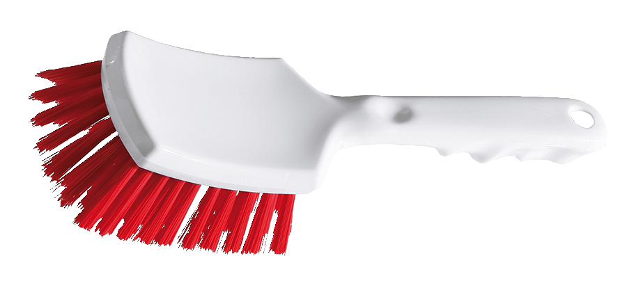 Ergonomisesti muotoiltu. Kovat harjakset. Laitteiden ja pintojen pesuun. Koko 260x72x55 mm (kokonaispituus x harjaosan korkeus x harjaosan leveys). Lämmönkesto + 140 °C.