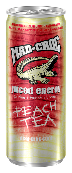 Vesi, sokeri, persikkamehutiivisteeste (2%), happo (E330), tauriini (400mg/100ml), happamuudensäätöaine (E331), teeuute, mallastiiviste (sisältää OHRA), kofeiinia (32mg/100ml), aromi, vitamiinit: B3, B5, B6, B12.