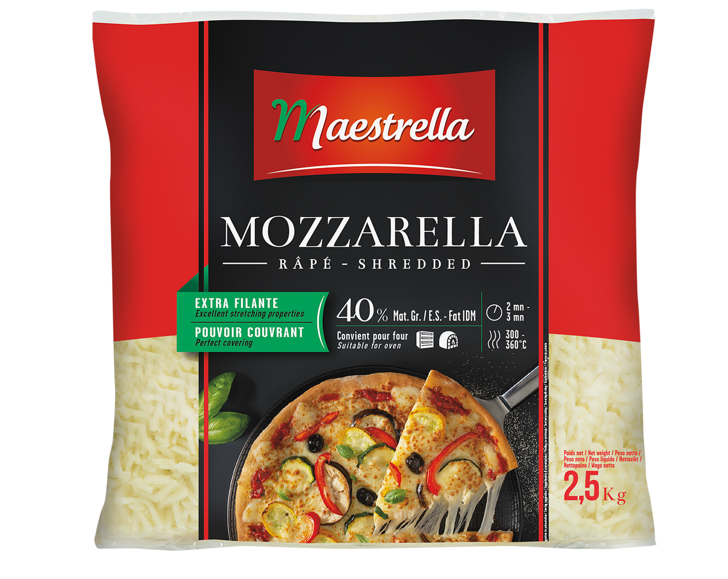 LaktoositonSuussasulava ranskalainen mozzarella-raaste kaikkeen ruoanlaittoon.
