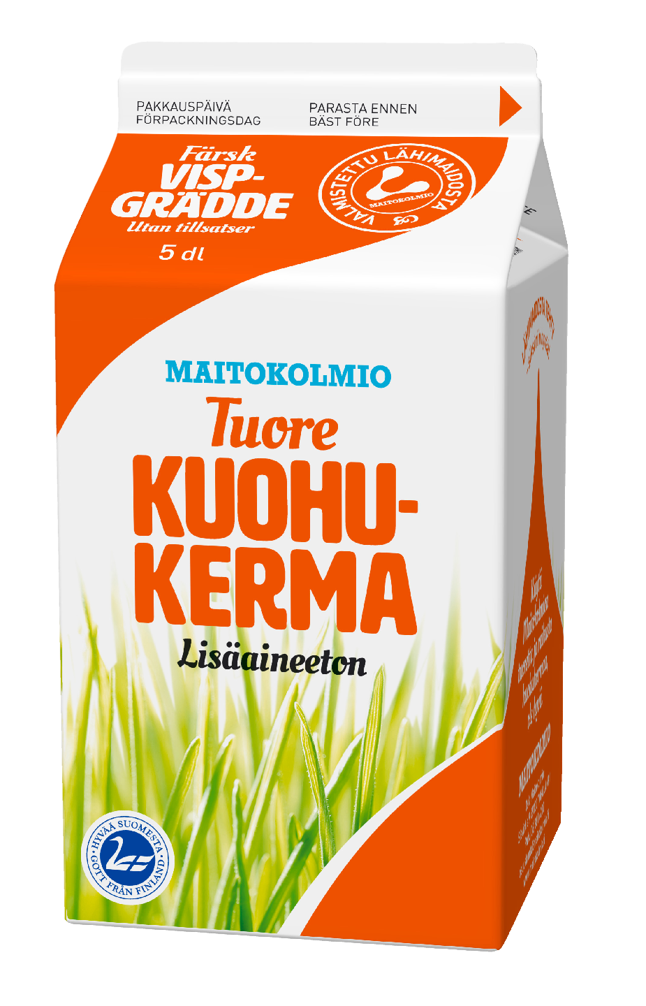 Maitokolmion tuore kuohukerma on lisäaineeton ja karrageeniton. Ei mitään lisättyä. Valmistamme kerman tuottajiemme lähimaidosta. Kuohukerma sopii ruoanvalmistukseen, jälkiruokiin ja leivontaan sellaisenaan tai vaahdotettuna.