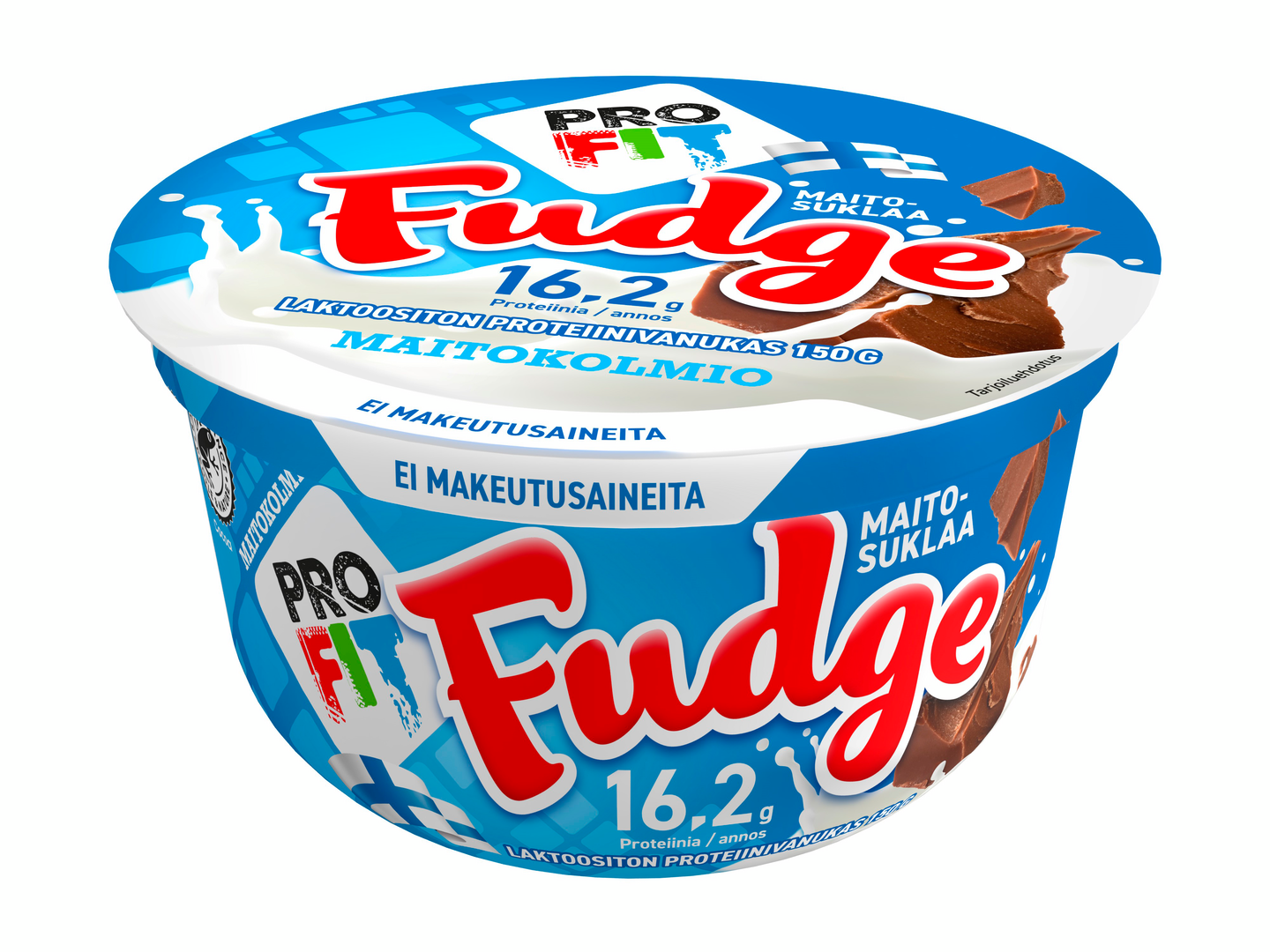 LaktoositonMaitokolmio Profit fudge Maitosuklaa proteiinivanukas on valmistettu valvotusti hyvinvoivien lehmien lähimaidosta. Vanukas sisältää runsaasti proteiinia ja siinä on reilusti fudgempi maku. Terveellinen laktoositon välipala maistuu nyt hurmaavalle maitosuklaalle!