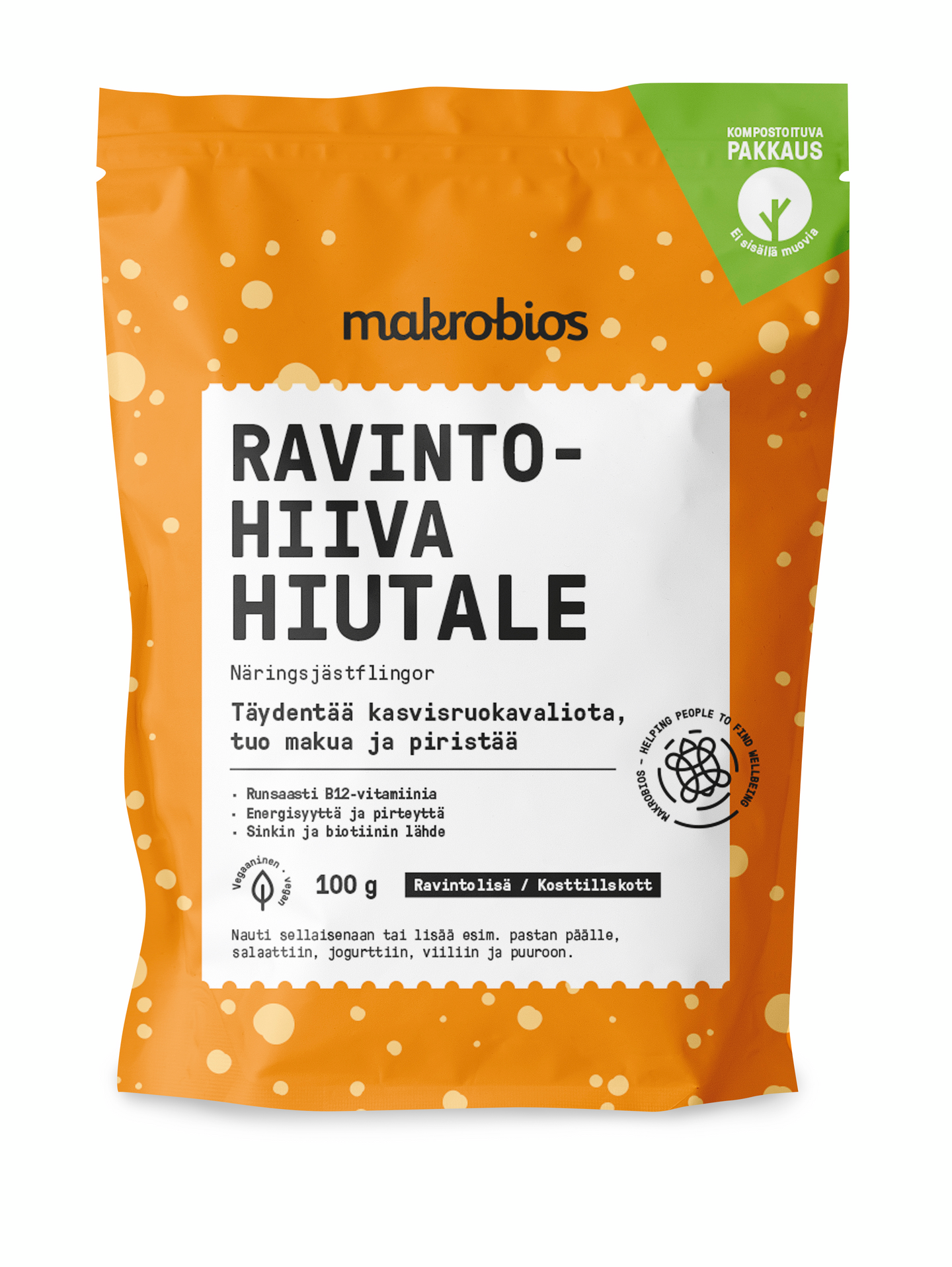 Monipuoliset ravintohiivahiutaleet! Sisältävät runsaasti luonnollisia ravintoaineita; hyvää proteiinia, B-vitamiineja, foolihappoa ja sinkkiä. Suosittelemme hiivahiutaleita