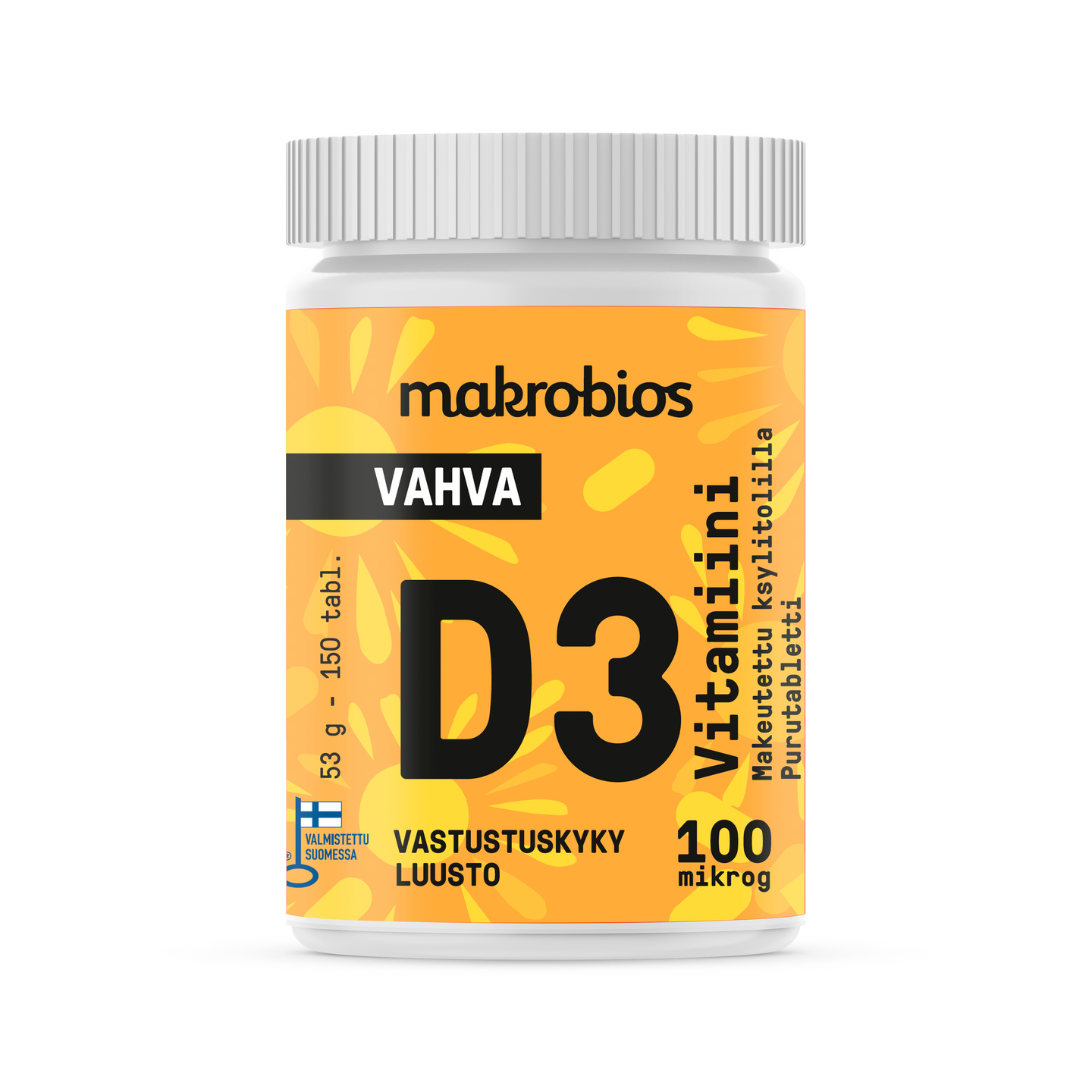 Makrobios Vahva D3-vitamiini appelsiini 100mcg 150 tabl. 53g