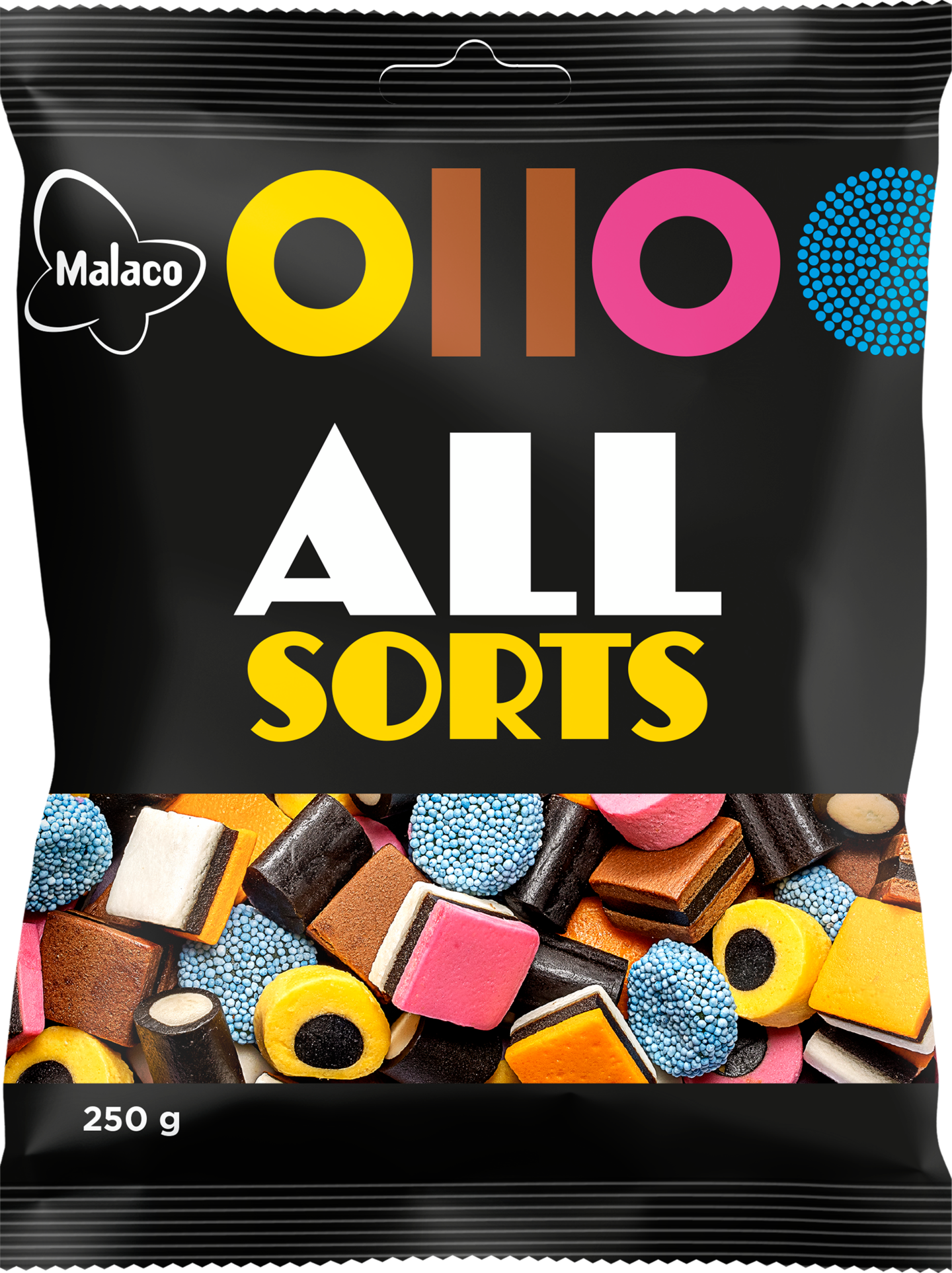 Malaco AllSorts Original on perinteinen, laadukas englanninlakritsisekoitus. Tyylikäs, mattapintainen ilme on Malaco Lakritsi -perheen tunnusmerkki.