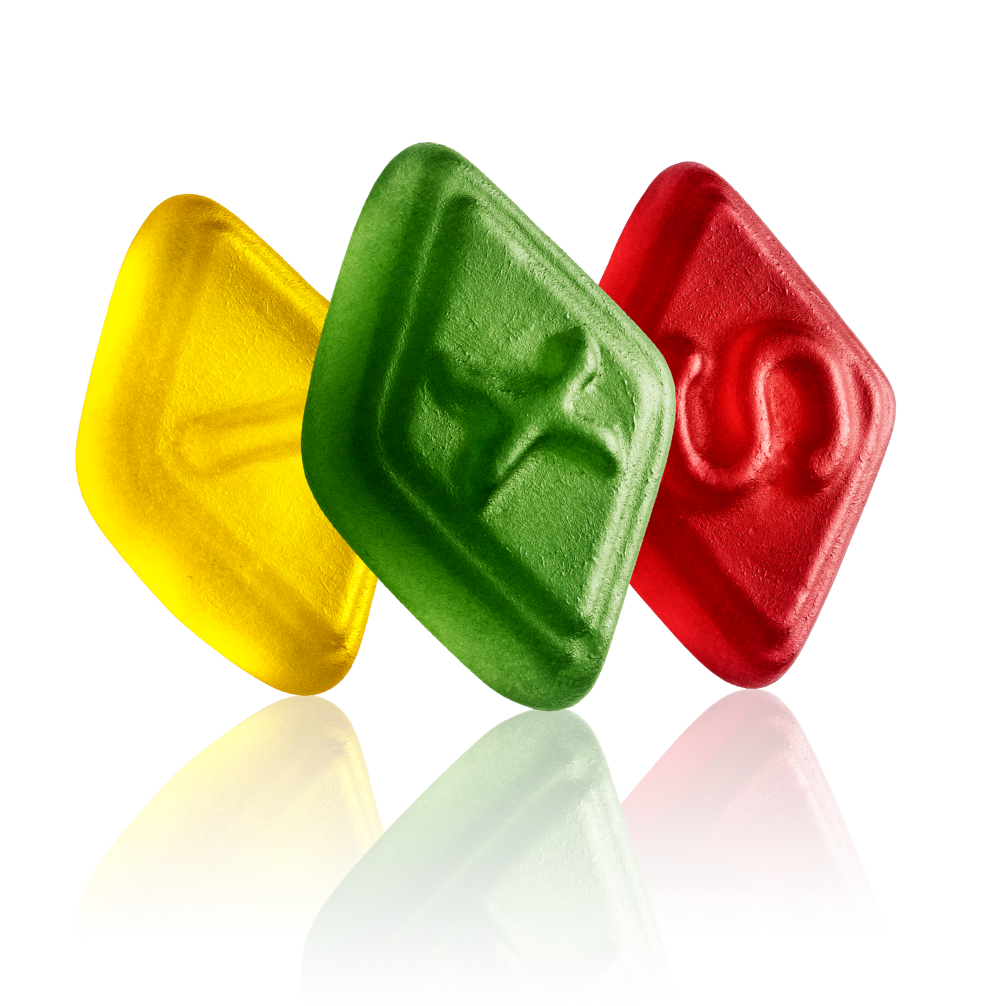 glukoosisiirappi, sokeri, muunnettu tärkkelys, liivate, stabilointiaine (sorbitoli), happo (sitruunahappo), luontaiset aromit, happamuudensäätöaine (E331), kasviöljyt (kookos, rapsi), pintakäsittelyaine (karnaubavaha), värit (karmiinit, klorofylliinikuparikompleksit, beta-karoteeni).