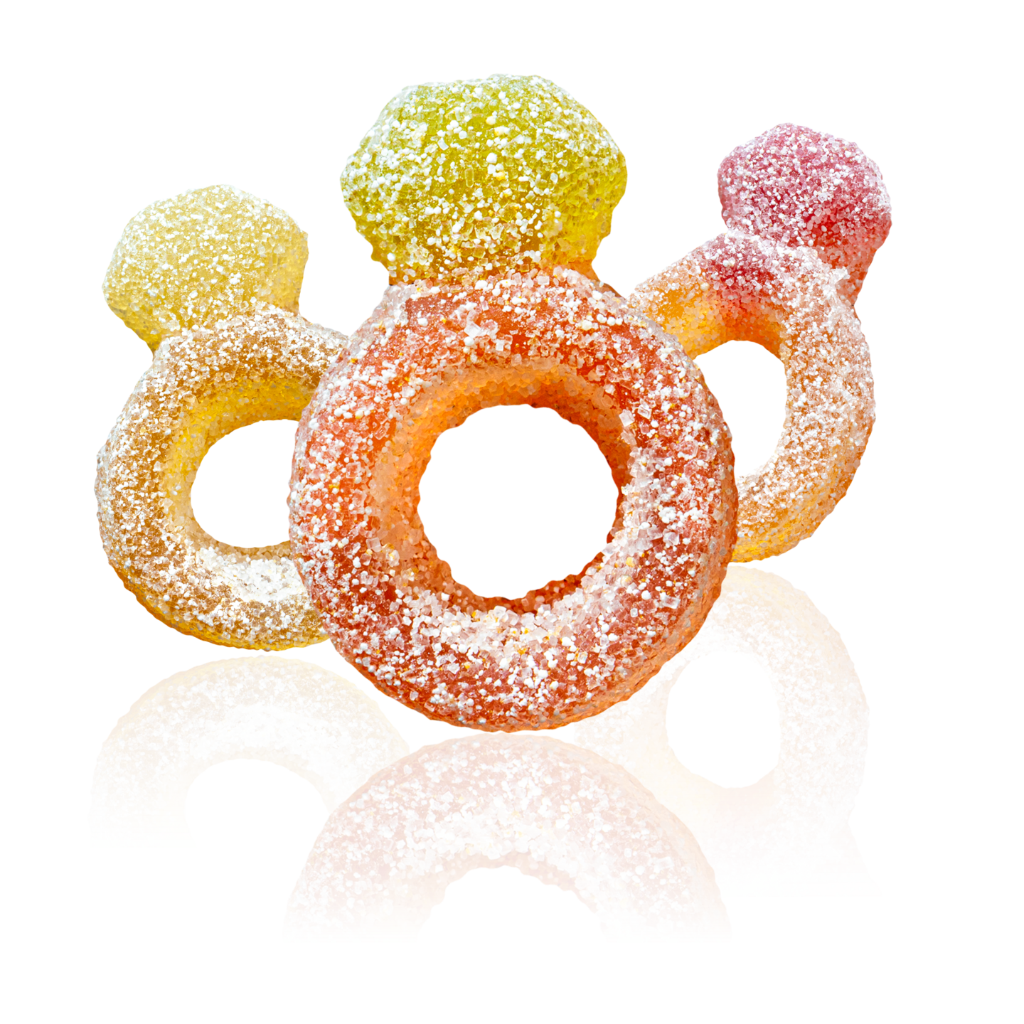 sokeri, glukoosisiirappi, tärkkelys, hapot (sitruunahappo, omenahappo), happamuudensäätöaineet (natriummalaatit, natriumsitraatit), luontaiset aromit, tiivisteet (spirulina, porkkana, mustaviinimarja), karamellisoitu sokeri, väri (paprikauute).