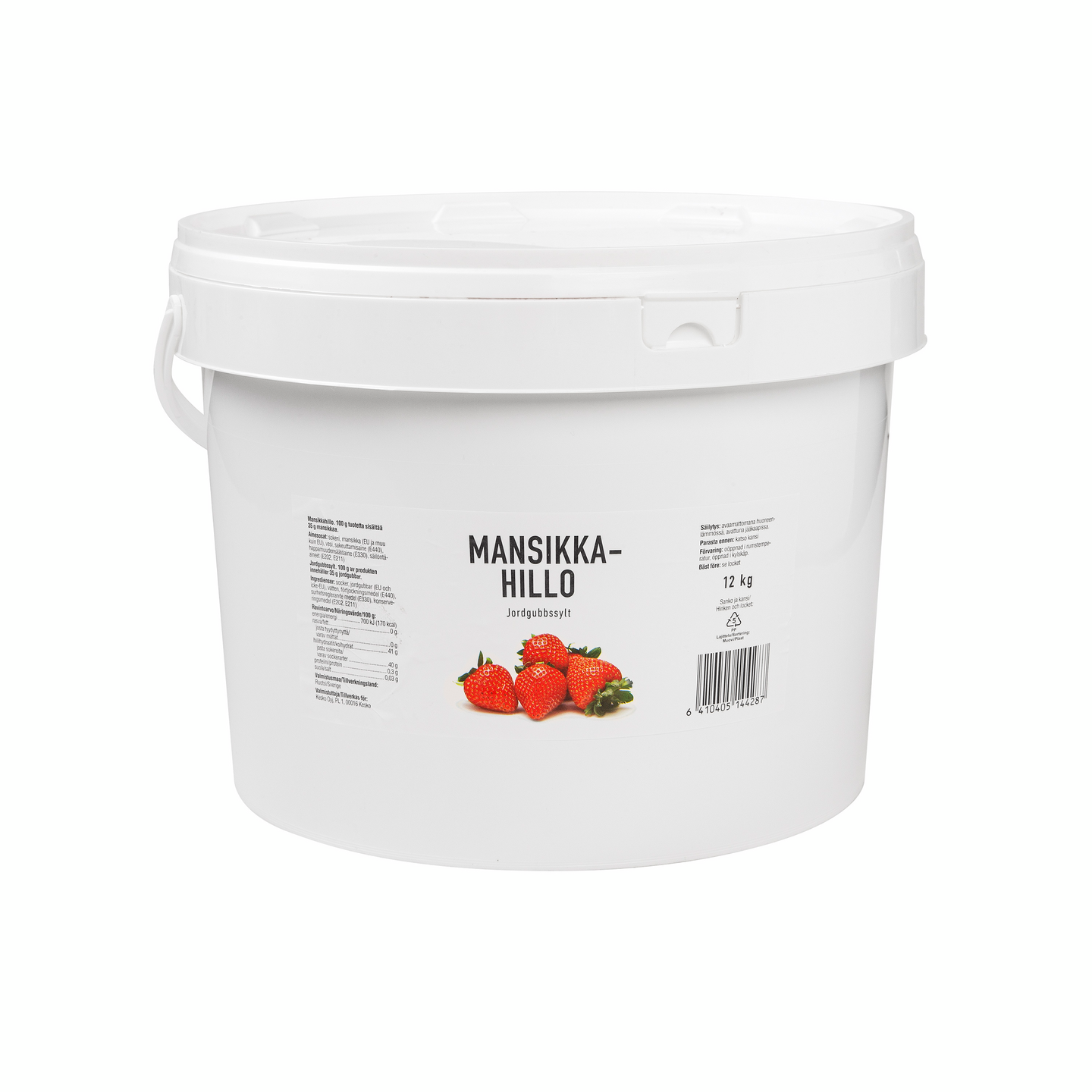 sokeri, mansikka (EU ja muu kuin EU), vesi, sakeuttamisaine (E440), happamuudensäätöaine (E330), säilöntäaineet (E202, E211)