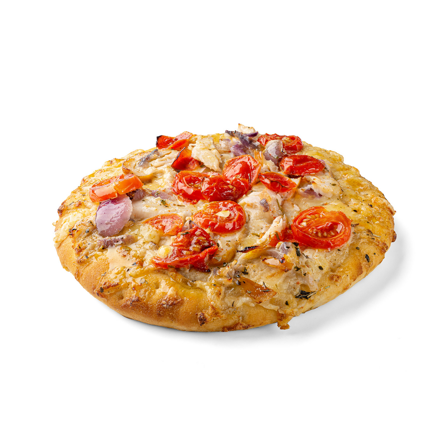 Pohja: VEHNÄjauho, vesi, kasviöljyt – shea, palmu ja auringonkukka, sokeri, hiiva, emulgointiaineet E471, E481 ja E472e, RUISjauho, MAITOjauhe, jodioitu suola, dekstroosi, VEHNÄgluteeni, aromi, väri E160a, happamuudensäätöaine E300, paakkuuntumisen estoaine E170. Kastike: RANSKANKERMA, majoneesi (rypsiöljy, vesi, sokeri, muunnettu maissitärkkelys, suola, KANANMUNAN keltuainenjauhe, glukoosisiirappi, SINAPINSIEMENET, väkiviinaetikka, mausteet, stabilointiaineet E412, E415, E401 ja E410, hapot E260, E330 ja E296), vesi, sokeri, jodioitu suola, sipulijauhe, valkosipulijauhe, oregano, viinietikka, chili paprika 0,05 %, pippuri. JUUSTO, tulisesti savustettu kananliha 11 % (kananliha 93 % (EU), vesi, suola, stabilointiaineet E450, E451, E331 ja E407, dekstroosi, antioksidantit E316 ja E301, mausteuutteet, sakeuttamisaine E415, säilöntäaine E262, aromit), tomaatit 8,5 %, sipuli 4 %, mausteet. Saattaa sisältää SOIJAA ja SEESAMIA.