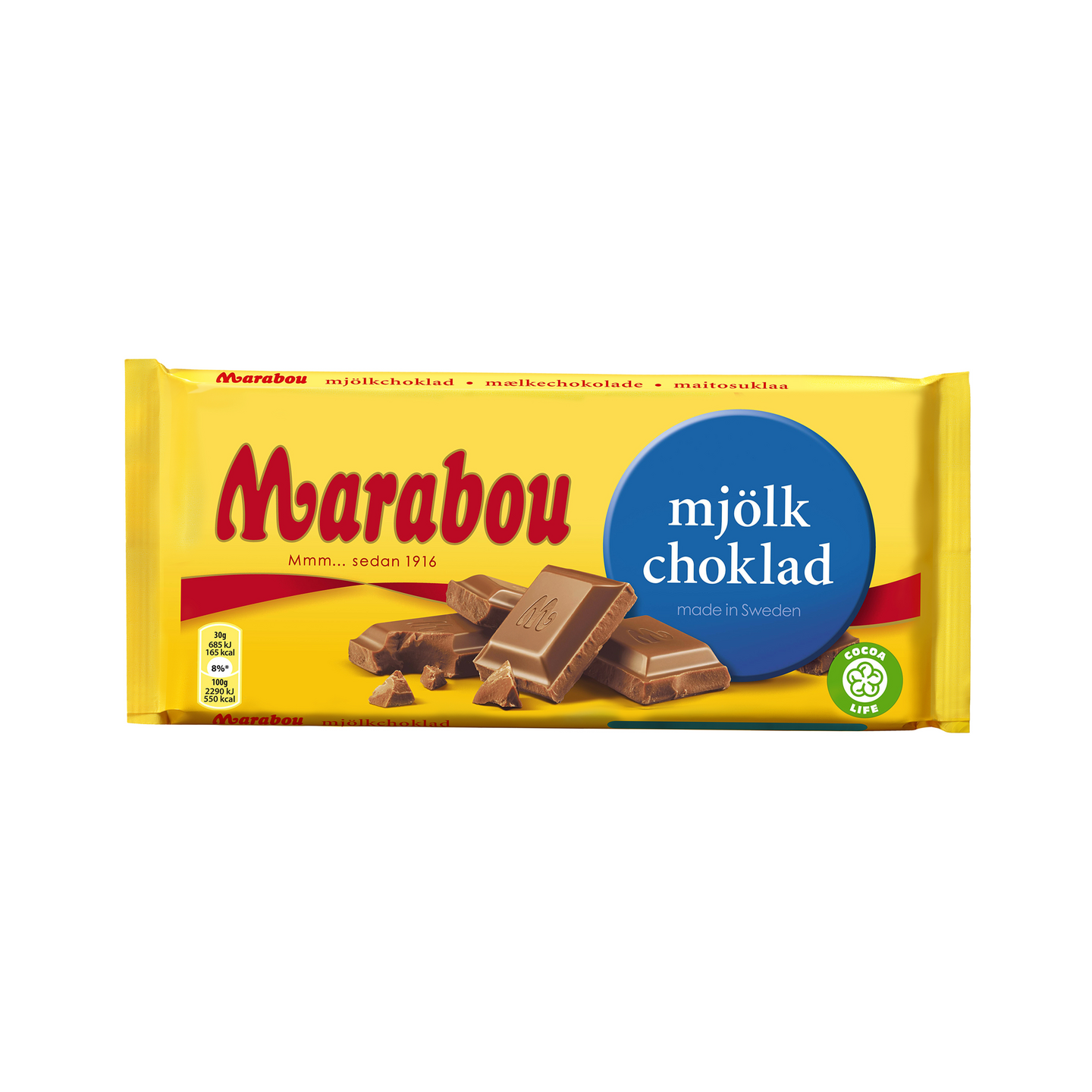 Marabou Mjölkchoklad Suklaapatukka - Herkullista Marabou maitosuklaata patukkamuodossa. Marabou on Ruotsissa vuonna 1916 perustettu suklaatuotemerkki, jonka tuotteet ovat jo sukupolvien ajan tuoneet iloa ja herkullisuutta perheiden arkeen ja juhlaan. Nauti suklaasta menossa tai kotona rentoutuen. Kaikki Marabou suklaat ovat 100% vastuullisesti Cocoa Life -tuotettuja. Cocoa Life on oma maailmanlaajuinen vastuullisuusohjelmamme.