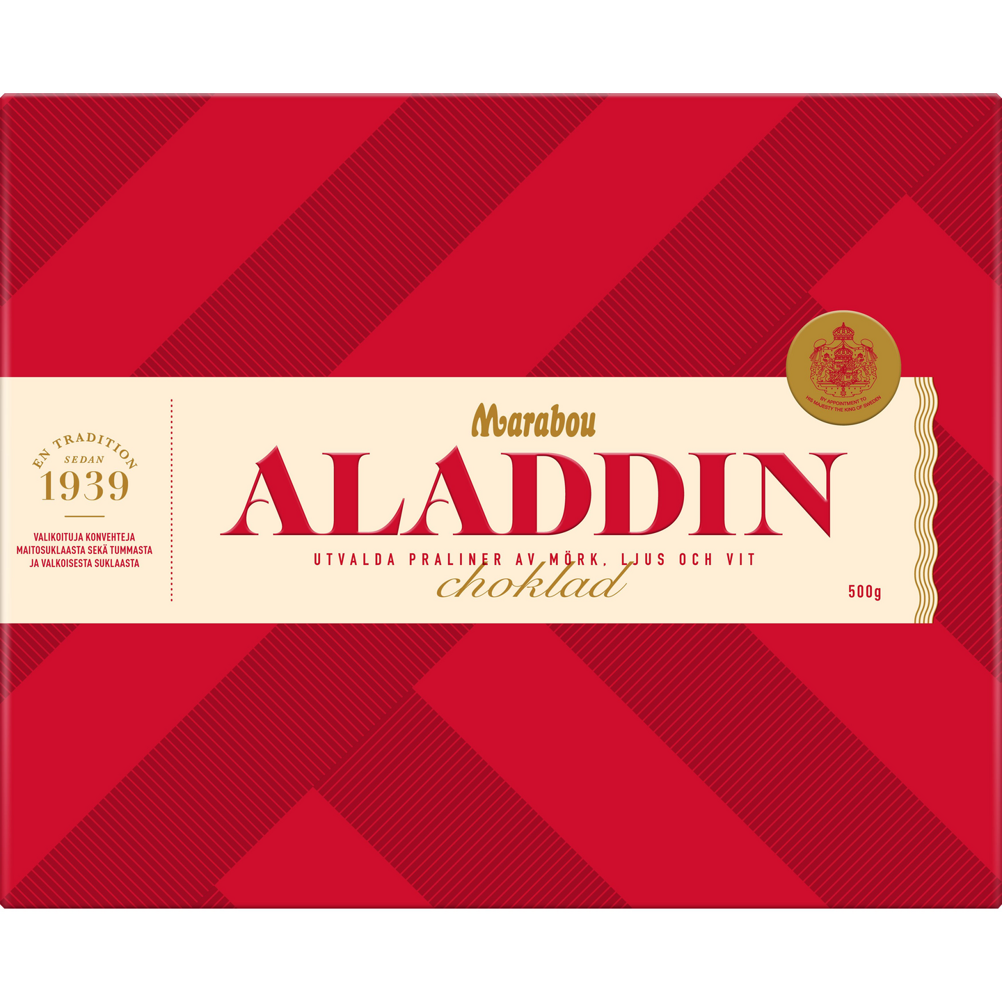 Marabou Aladdin - Konvehtirasia, joka sisältää kaksi kerrosta ainutlaatuisia suklaakonvehteja herkullisilla täytteillä ja varianteilla, jokaiseen makuun. Aladdin on ikoninen suklaakonvehtirasia, jo vuodesta 1939. Täydellinen tuote lahjaksi ja nautinnollisiin joulun hetkiin. Kaikki Marabou suklaat ovat 100% vastuullisesti Cocoa Life -tuotettuja. Cocoa Life on oma maailmanlaajuinen vastuullisuusohjelmamme.