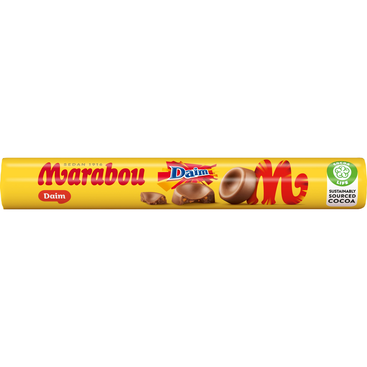 Marabou Daim Nappirulla - Klassista Marabou maitosuklaata suklaanappirullana sisältäen rapean karamellista Daim-krokanttia. Marabou on Ruotsissa vuonna 1916 perustettu suklaatuotemerkki, jonka tuotteet ovat jo sukupolvien ajan tuoneet iloa ja herkullisuutta perheiden arkeen ja juhlaan. Nauti suklaasta menossa tai kotona rentoutuen. Kaikki Marabou suklaat ovat 100% vastuullisesti Cocoa Life -tuotettuja. Cocoa Life on oma maailmanlaajuinen vastuullisuusohjelmamme.