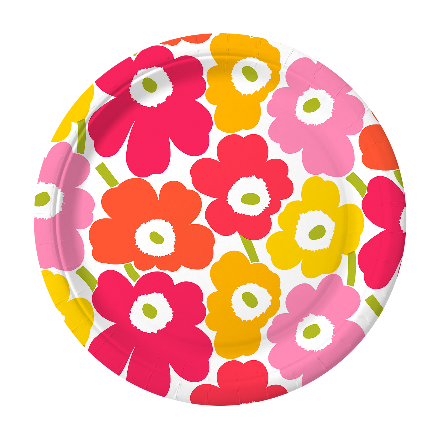 Klassisen tyylikkäisiin kattauksiin sopiva lautanen. Kesäisen värikäs Marimekon Mini Unikko kuosi. Alkuperäisen Unikko kuosin suunnitteli Maija Isola vuonna 1964.
