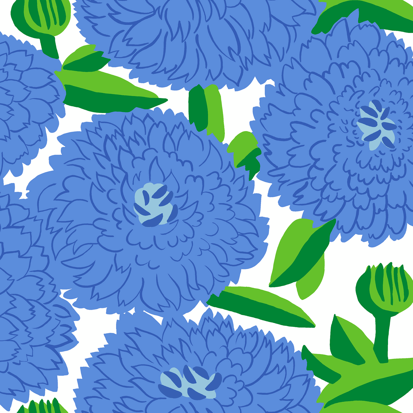 Klassiset Marimekon Primavera lautasliinat sinisessä värityksessä. Pirmavera kuosin suunnitteli Maija Isola vuonna 1972. Kotimaiset lautasliinat ovat Havin valmistamat ja ne ovat painettu Imatralla 3-kertaiselle pehmopaperille. Lautasliinoille on myönnetty Avainlippu, Joutsenmerkki ja FSC.