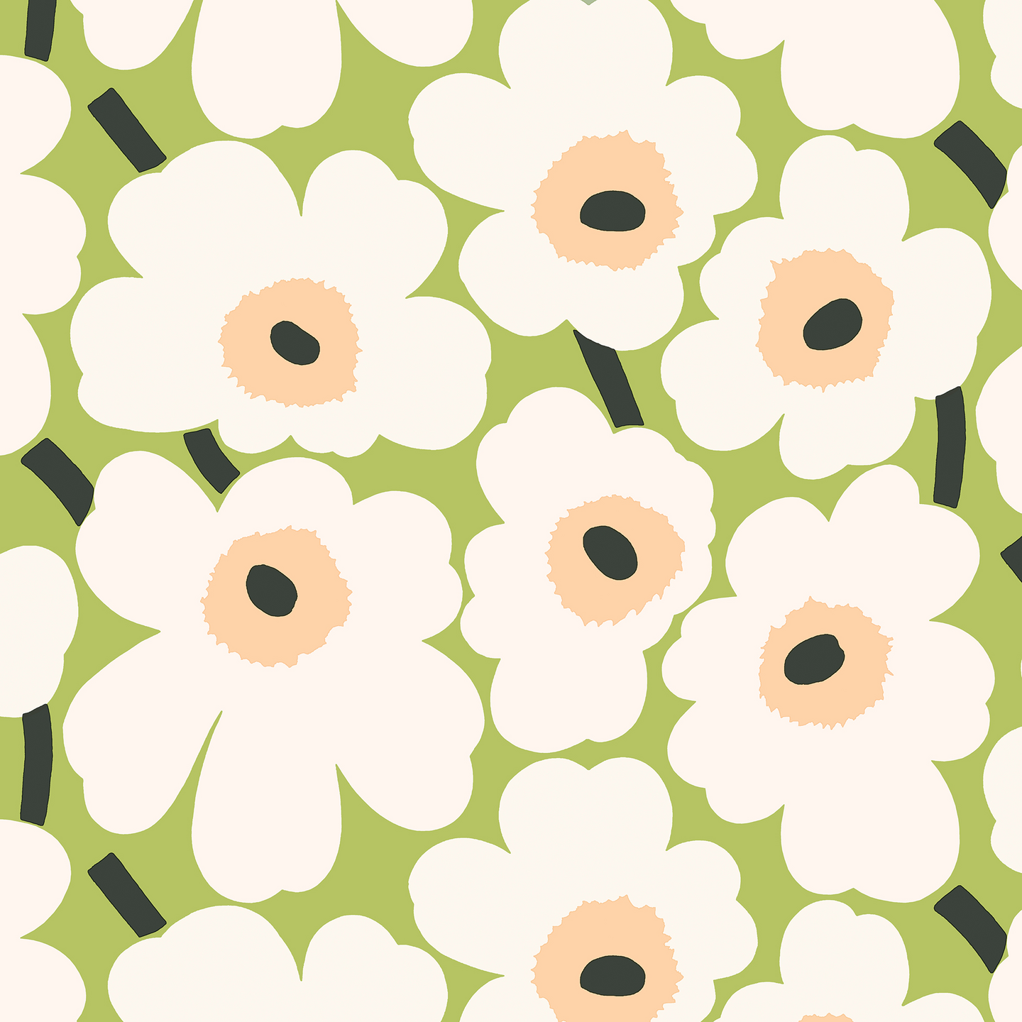 Suloiset Marimekon Mini Unikko lautasliinat vaaleanvihreässä värityksessä. Alkuperäisen Unikko kuosin suunnitteli Maija Isola vuonna 1964. Kotimaiset lautasliinat ovat Havin valmistamat ja ne ovat painettu Imatralla 3-kertaiselle pehmopaperille. Lautasliinoille on myönnetty Avainlippu, Joutsenmerkki ja FSC.