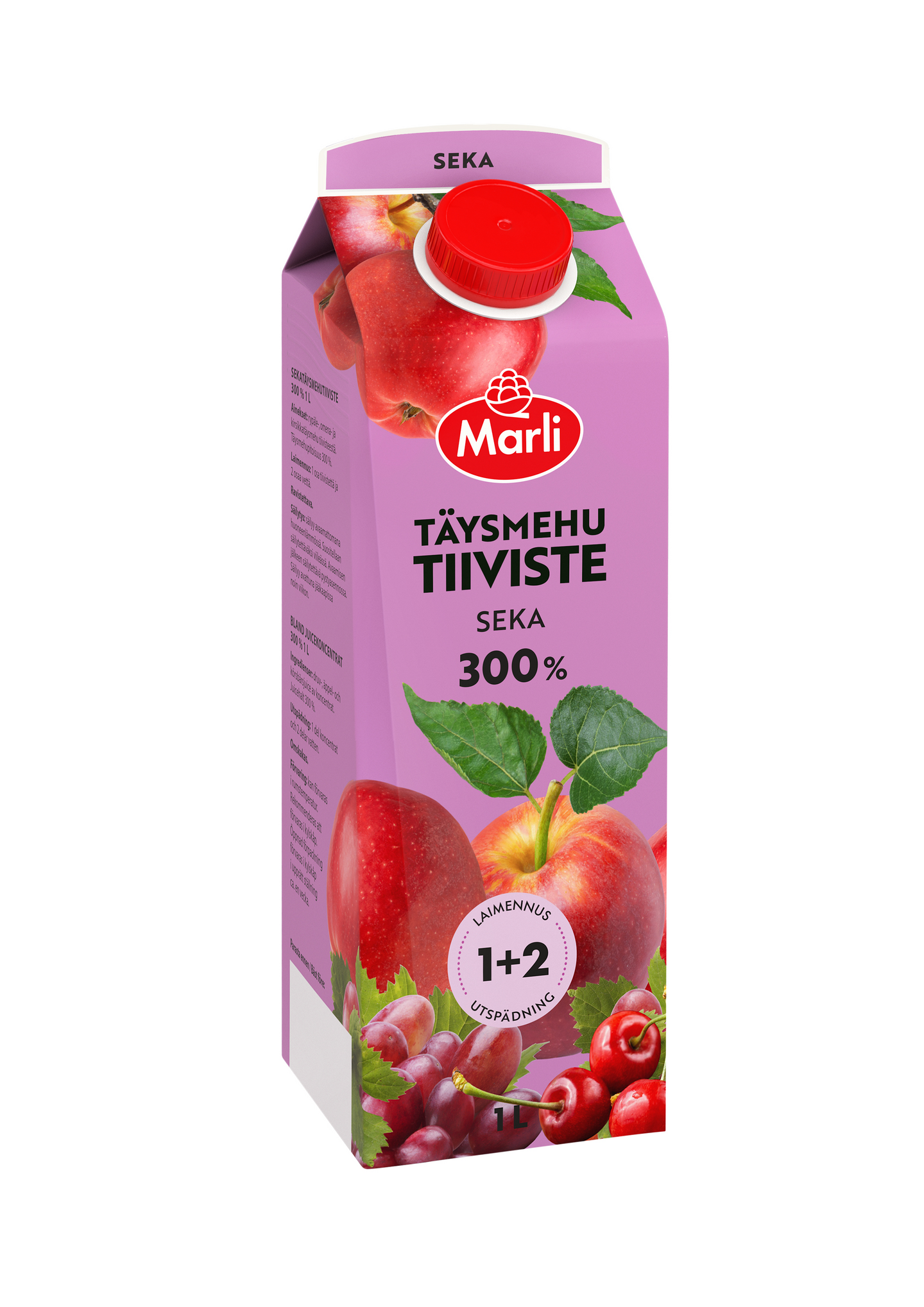 VegaaninenCatering tuote. Pakkauksesta saa 3 L täysmehua. Marli täysmehutiivisteet on kehitetty ammattilaisten toiveiden mukaisiksi ja ne on suunnattu ensisijaisesti suurkeittiöille ja ravintoloille. Marli täysmehusarjan tuotteet ovat tiivisteitä, joista saa laimennettuna 100 % täysmehua.
