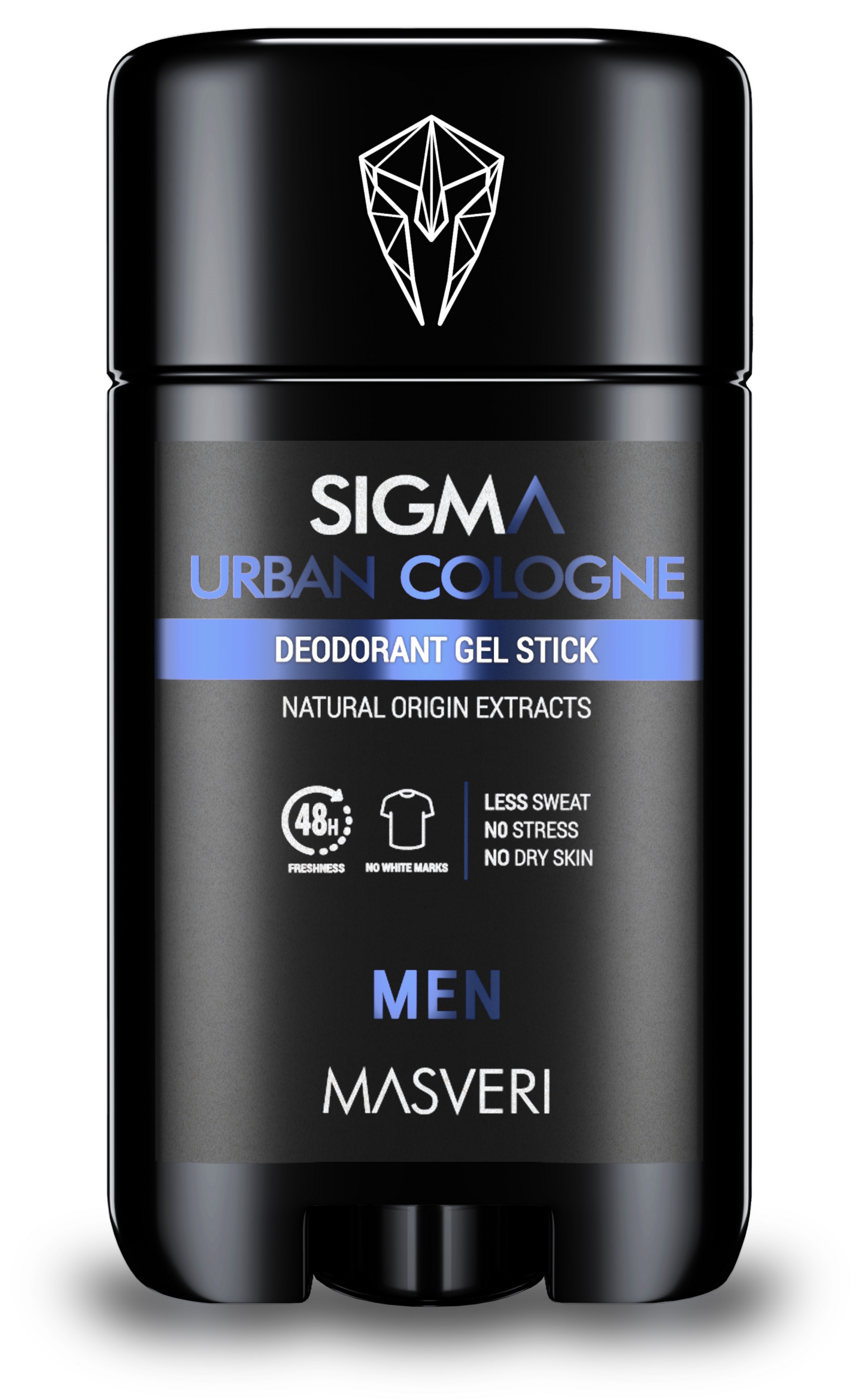 Masveri Sigma Deo Stick Urban Cologne LESS SWEAT, tuotteen erityisesti kehitetty geelimäinen koostumus imee ylimääräistä kosteutta ja suojaa hikoilulta. EI STRESSIÄ, poistaa tehokkaasti hien hajua ja imee kosteutta, ja huipputuoksut takaavat mukavuuden ja raikkauden koko päiväksi. EI KUIVATA IHOA, ravitsee ja kosteuttaa ihoa täydellisesti korkean propyleeniglykolipitoisuuden ansiosta, joka on erinomainen kosteuttaja, sekä pehmentävien aineiden ja luonnollisia uutteita ansiosta.