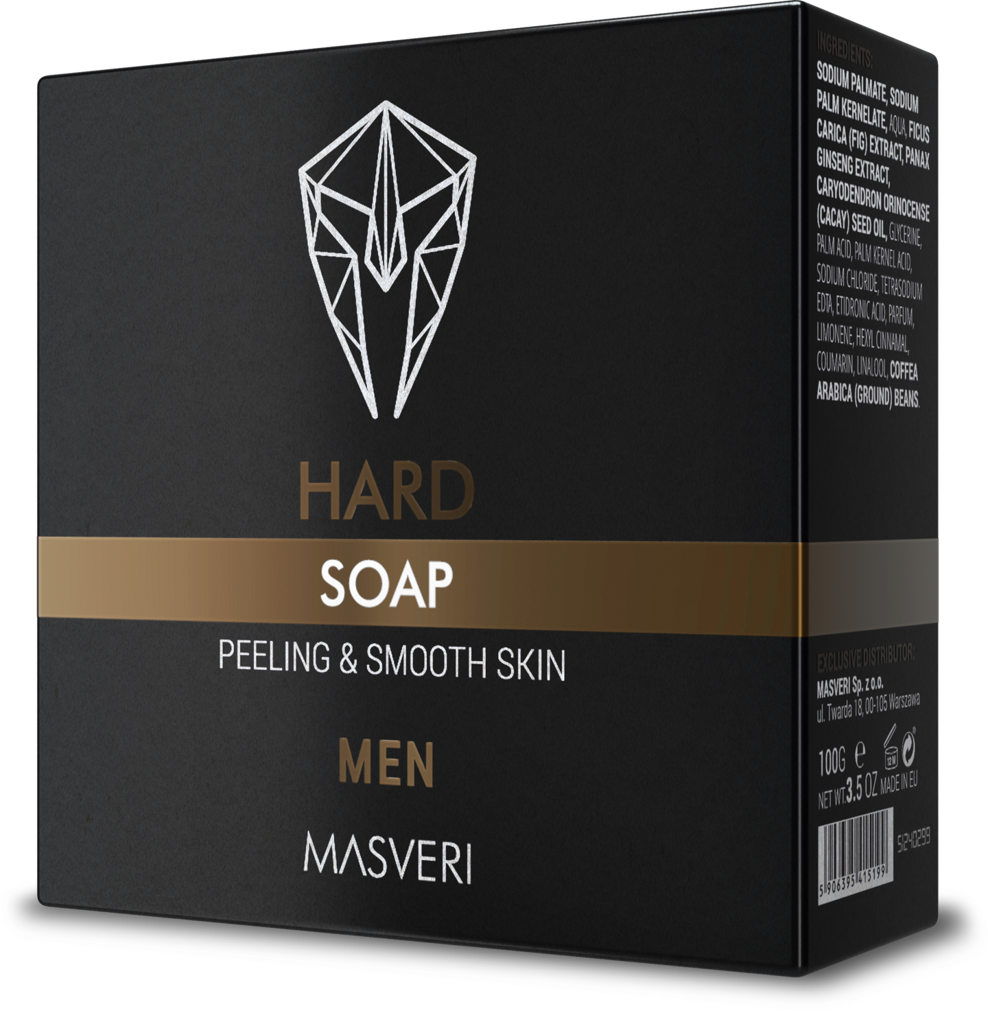 Masveri HARD palasaippua on kehitetty erityisesti hoitamaan ihoa kylvyn aikana. Luonnonperäisten uutteiden ja kakaoöljyn koostumus antaa iholle optimaalisen kosteustason, tukee sen uudistumista ja ravitsemista. Kasviperäinen pesuainepohja, joka on rikastettu jauhetuilla kahvipavuilla, puhdistaa ihon hellävaraisesti mutta perusteellisesti ja kuorii sen.