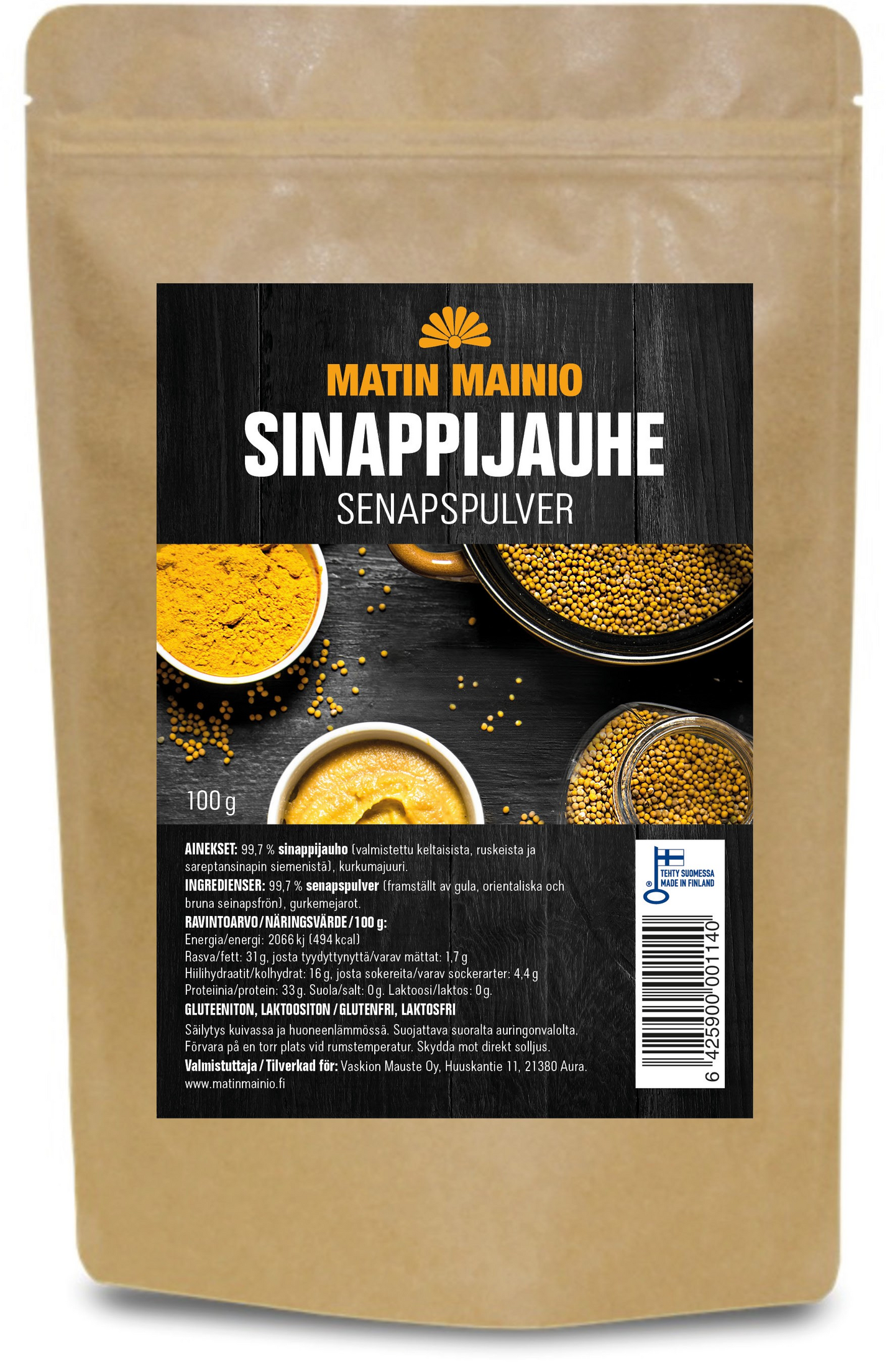 VegaaninenMatin Mainio -sinappijauheesta voit valmistaa mainiota sinappia itse vaikkapa joulupöytään! Sopii hyvin myös ruokien maustamiseen.