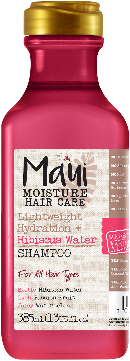 Maui Moisture Hibiscus Water shampoon ensimmäisenä raaka-aineena on käytetty aloemehua ja lisäksi se on rikastettu puhtaalla kookosvedellä. Vastustamaton tuoksu ja koostumus takaavat hemmottelevan kokemuksen.