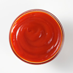 Tomaattipyree, glukoosi-fruktoosisiirappi, etikka, muunnettu perunatärkkelys, suola, happamuudensäätöaine (E330), säilöntäaineita (E202, E211), luontainen aromi.