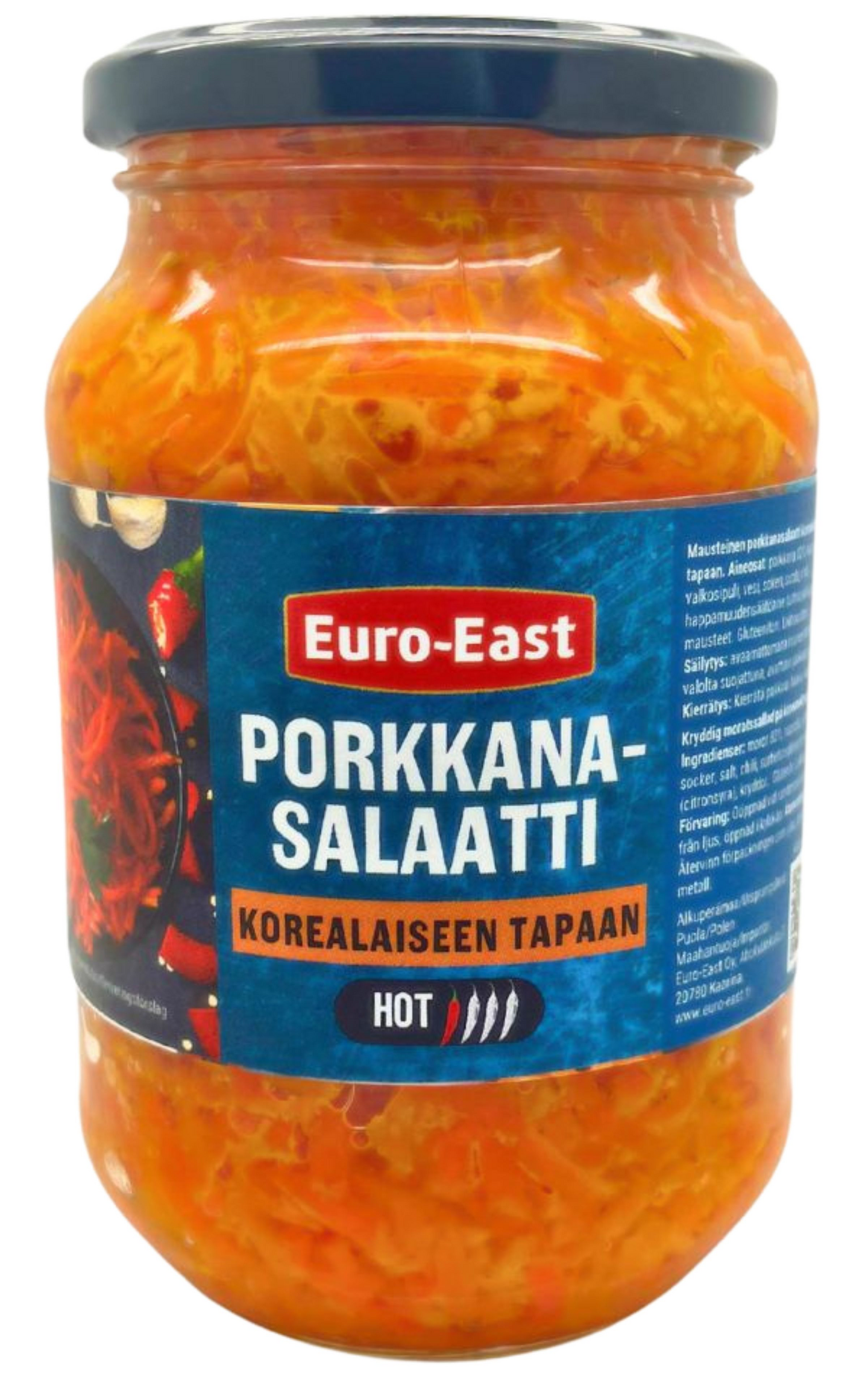 Porkkana 82%, rapsiöljy, valkosipuli, vesi, sokeri, suola, chili, happamuudensäätöaine (sitruunahappo), mausteet. Gluteeniton. Laktoositon. Pastöroitu.