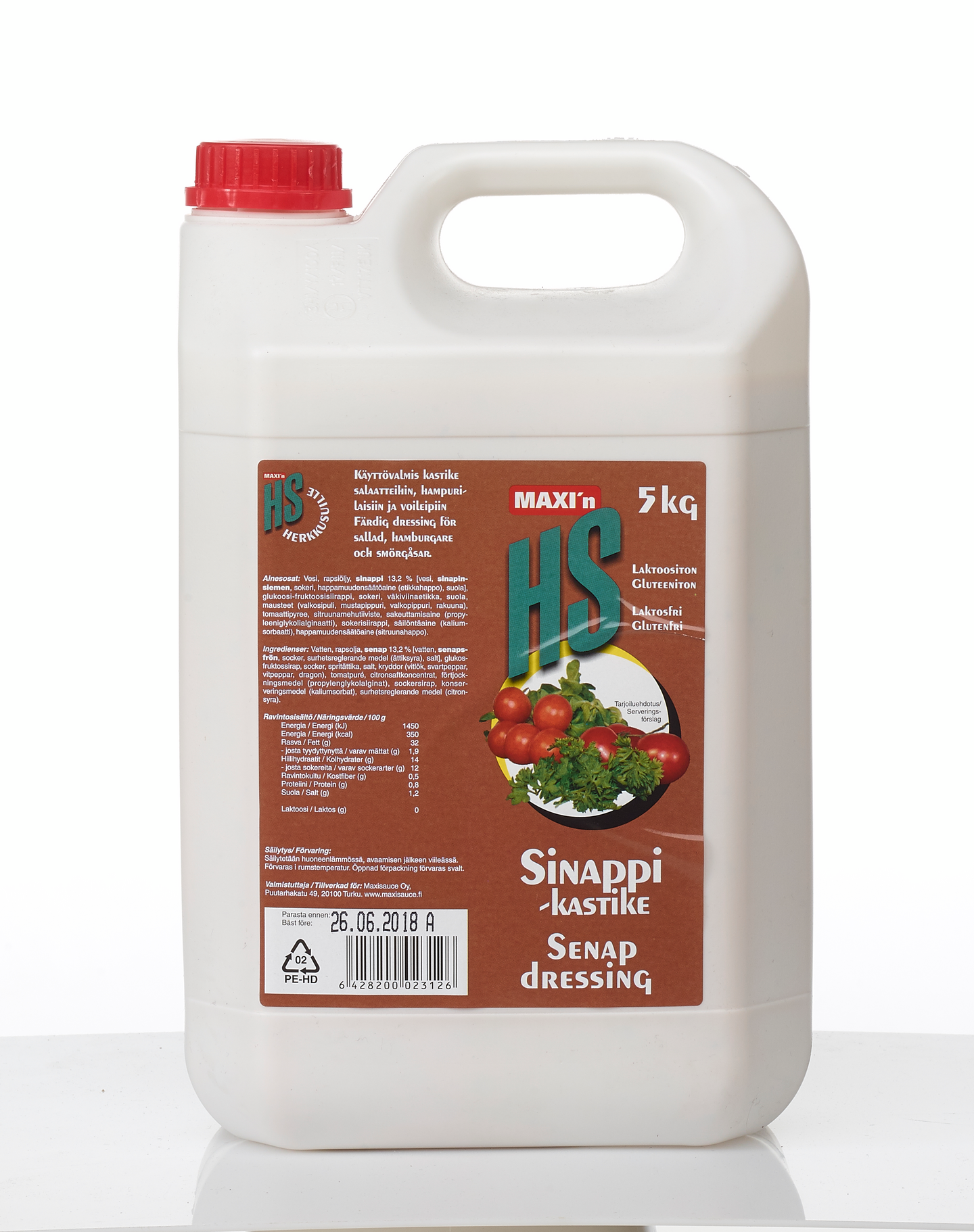 Vesi, rapsiöljy, SINAPPI 13,2 % sinapinsiemen, sokeri, happamuudensäätöaine (etikkahappo), suola">undefined, glukoosi-fruktoosisiirappi, sokeri, väkiviinaetikka, suola, mausteet (valkosipuli, mustapippuri, valkopippuri, rakuuna), tomaattipyree, sitruunamehutiiviste, sakeuttamisaine (propyleeniglykolialginaatti), sokerisiirappi, säilöntäaine (kaliumsorbaatti), happamuudensäätöaine (sitruunahappo).