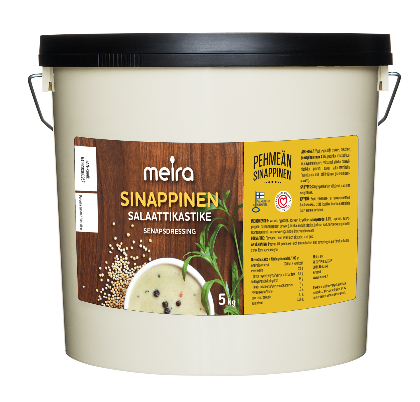 VegaaninenMeira salaattikastikkeiden täyteläinen maku on peräisin aidoista mausteista, yrteistä ja sinapista. Salaattikastikkeiden valmistuksessa on käytetty rypsiöljyä, joka on hyvä omega-3-rasvahappojen lähde. Tuotteet eivät sisällä lainkaan keinotekoisia aromeja tai väriaineita. Meira salaattikastikkeet on merkitty suomalaisella Avainlippu-tunnuksella, ja lisäksi ne ovat saaneet Suomen Sydänliiton Sydänmerkin.