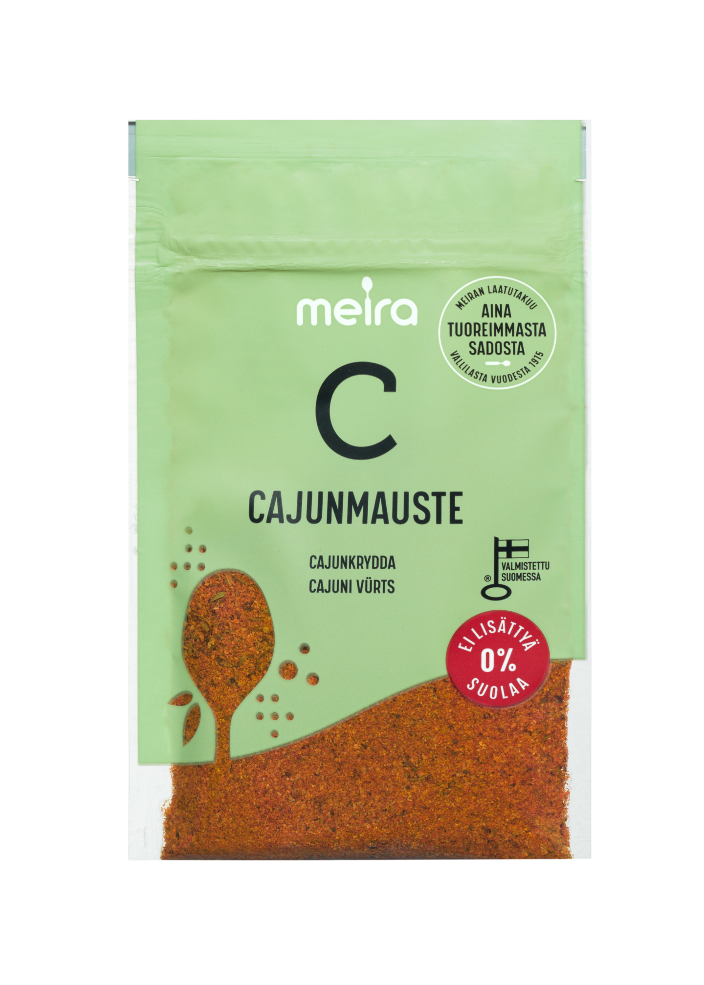 Cajunmauste on voimakkaan täyteläinen mausteseos. Se sopii paistetun ja grillatun lihan sekä kalan, risottojen sekä äyriäis- ja pataruokien maustamiseen. Meiran laatutakuu: Meiran mausteet ovat aina tuoreimmasta sadosta, jolloin kaikki luonnolliset makuaromit ja tuoksut ovat tallella.