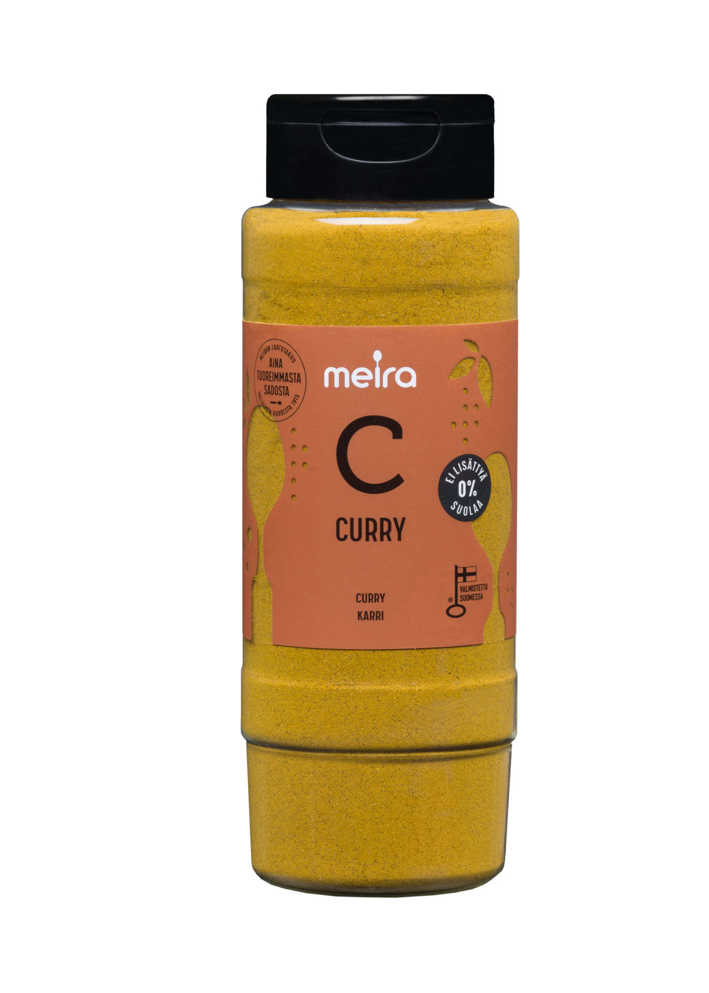 Curry on alunperin intialainen mausteseos. Se sopii broileri-, kala-, liha-, muna- ja riisiruokien sekä erilaisten kastikkeiden maustamiseen. Meiran laatutakuu: Meiran mausteet ovat aina tuoreimmasta sadosta, jolloin kaikki luonnolliset makuaromit ja tuoksut ovat tallella.