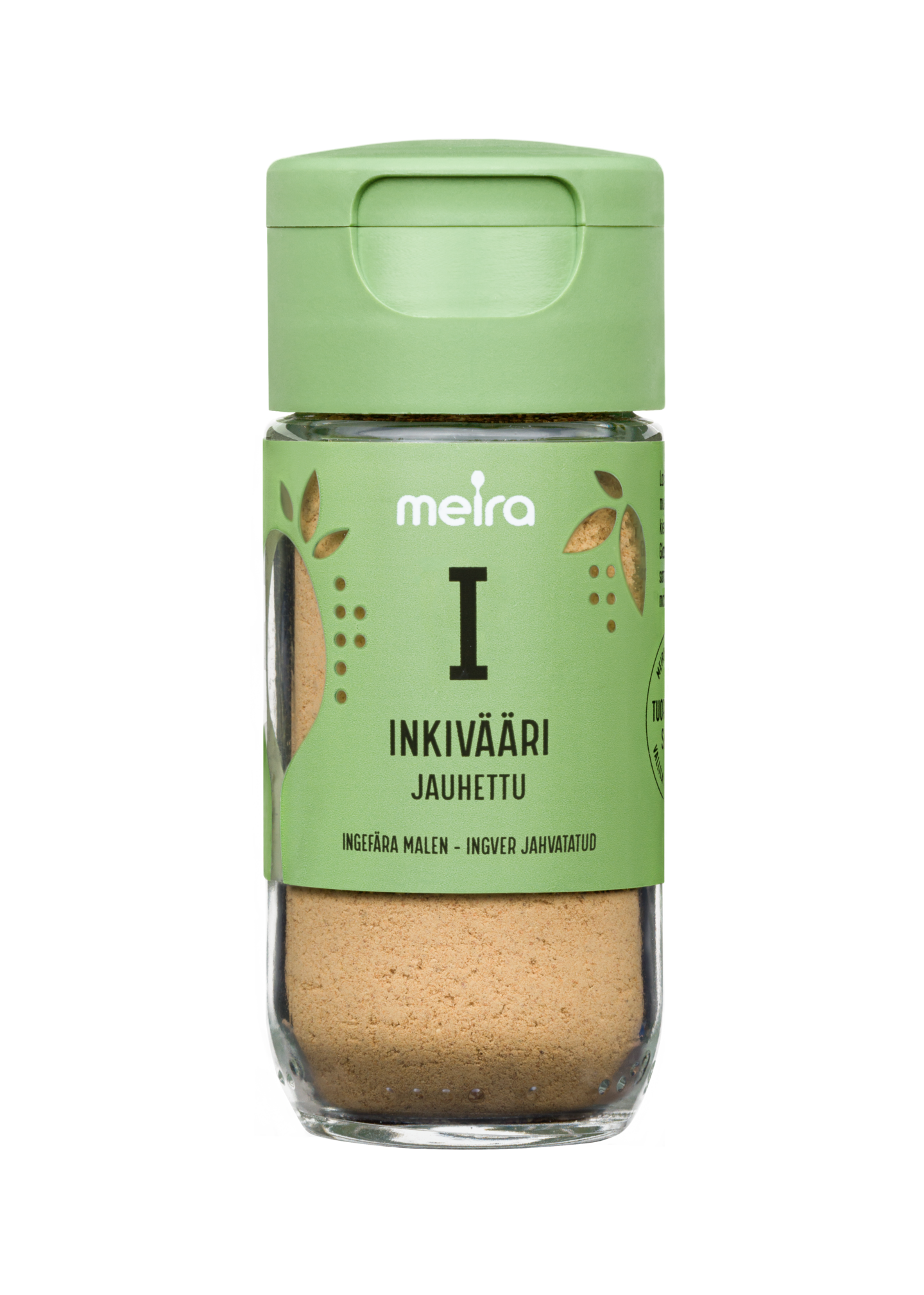 Jauhettua inkivääriä käytetään piparkakkujen, maustekakkujen, omenaleivonnaisten ja erilaisten ruokien maustamiseen. Se sopii myös ripoteltavaksi viilin pinnalle. Meiran laatutakuu: Meiran mausteet ovat aina tuoreimmasta sadosta, jolloin kaikki luonnolliset makuaromit ja tuoksut ovat tallella.