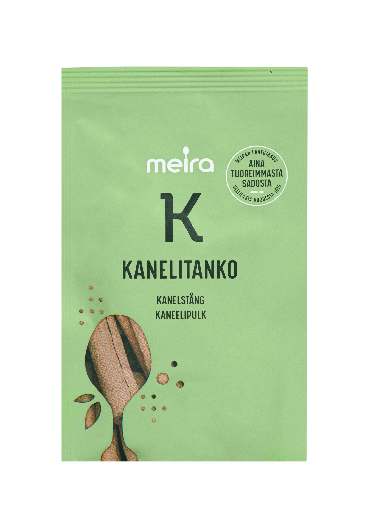 Kanelitankoja käytetään hedelmä- ja raparperi- jälkiruokien, vihannes- ja hedelmäsäilykkeiden sekä kuumien juomien maustamiseen. Meiran laatutakuu: Meiran mausteet ovat aina tuoreimmasta sadosta, jolloin kaikki luonnolliset makuaromit ja tuoksut ovat tallella.