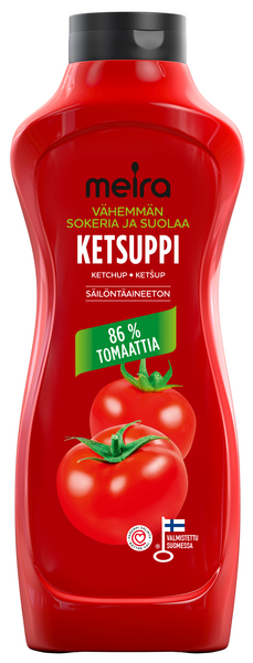 Kotimainen Meira Ketsuppi on suomalaiseen makuun valmistettu. Rakenne on täyteläinen ja maku herkullisen tomaattinen. Meira Ketsuppi vähemmän sokeria ja suolaa on nimensä mukaisesti energiamäärältään kevyempi ketsuppi. Mausta tinkimättä tuote on kuitenkin täyteläinen ja runsaan tomaattinen. Meira Ketsuppi vähemmän sokeria ja suolaa ei Meira Ketsupin tavoin sisällä lainkaan säilöntäaineita, keinotekoisia makeutusaineita tai sakeuttamisaineita. Meira Ketsuppi valmistetaan Meiran tehtaalla Helsingin Vallilassa. Tuote on merkitty suomalaisella Avainlippu-tunnuksella, ja lisäksi tuote on saanut Suomen Sydänliiton Sydänmerkin.