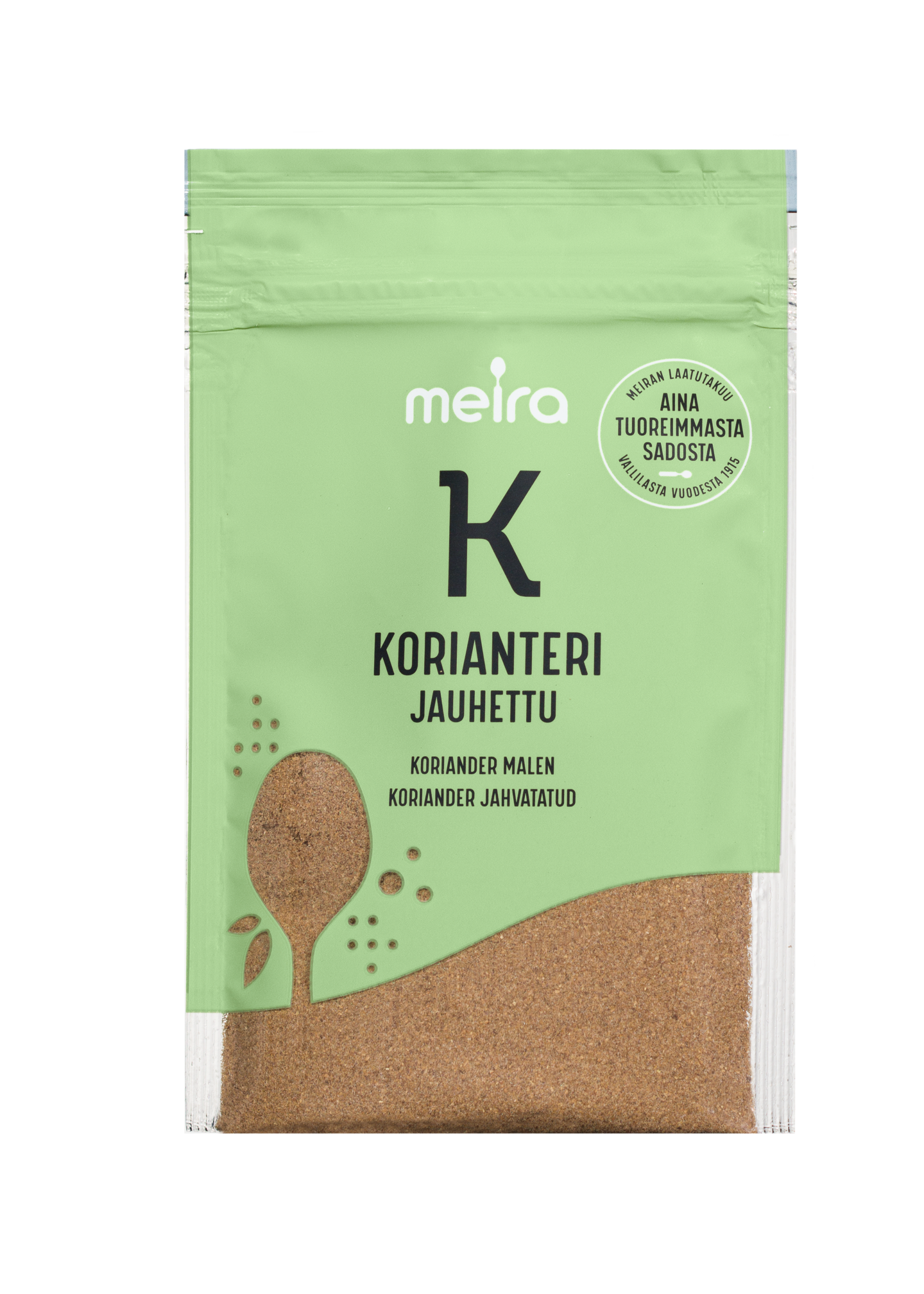 Korianteri sopii aasialaisten ruokien sekä erilaisten liha-, broileri-, kala-, kasvis- ja riisiruokien maustamiseen. Sitä käytetään myös leivonnaisten, kuten ruokaleipien ja omenaleivonnaisten maustamiseen. Meiran laatutakuu: Meiran mausteet ovat aina tuoreimmasta sadosta, jolloin kaikki luonnolliset makuaromit ja tuoksut ovat tallella.