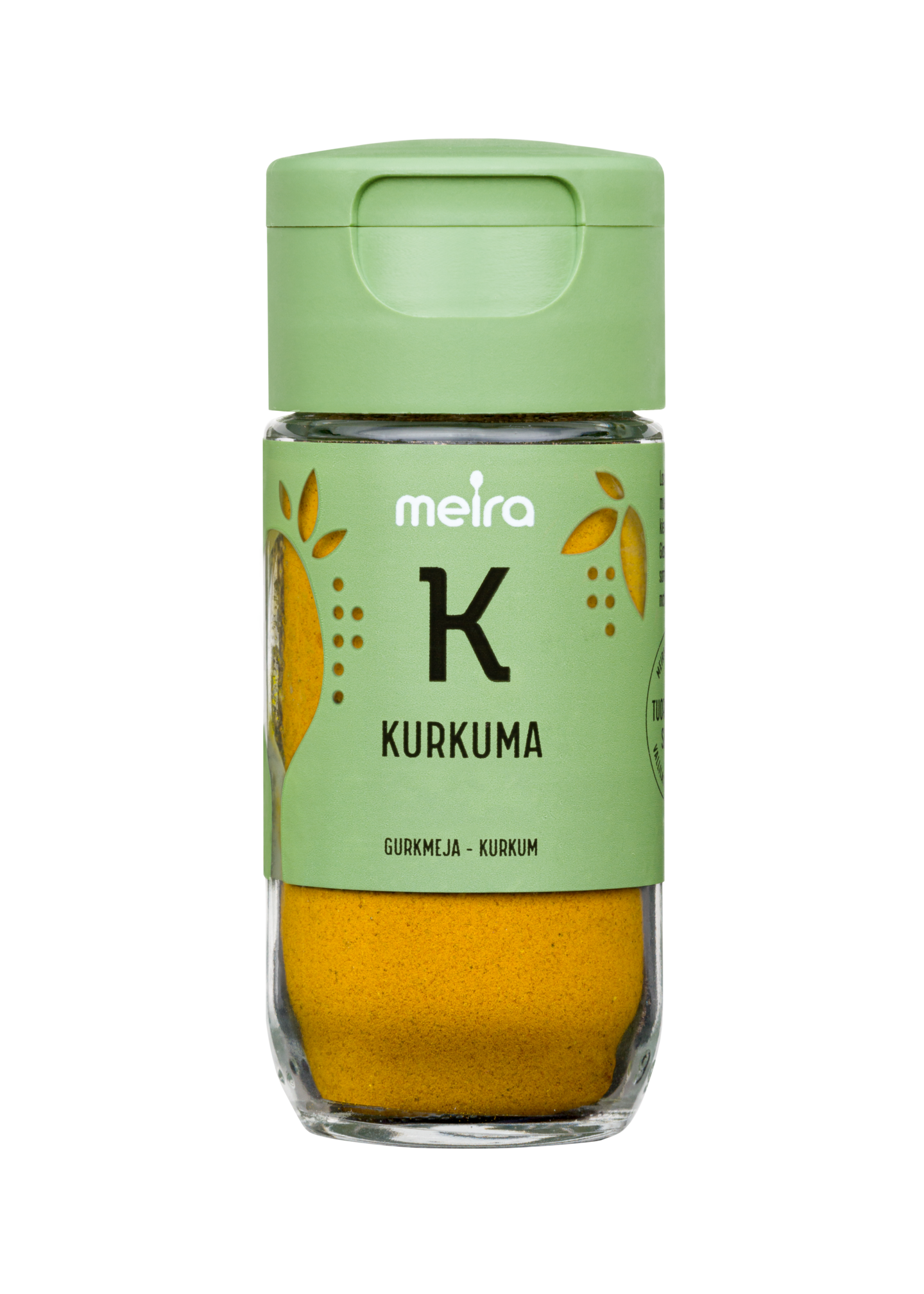 Kurkuma sopii kana-, kala-, liha- ja äyriäisruokien maustamiseen sekä curryn asemasta riisiruokiin. Meiran laatutakuu: Meiran mausteet ovat aina tuoreimmasta sadosta, jolloin kaikki luonnolliset makuaromit ja tuoksut ovat tallella.
