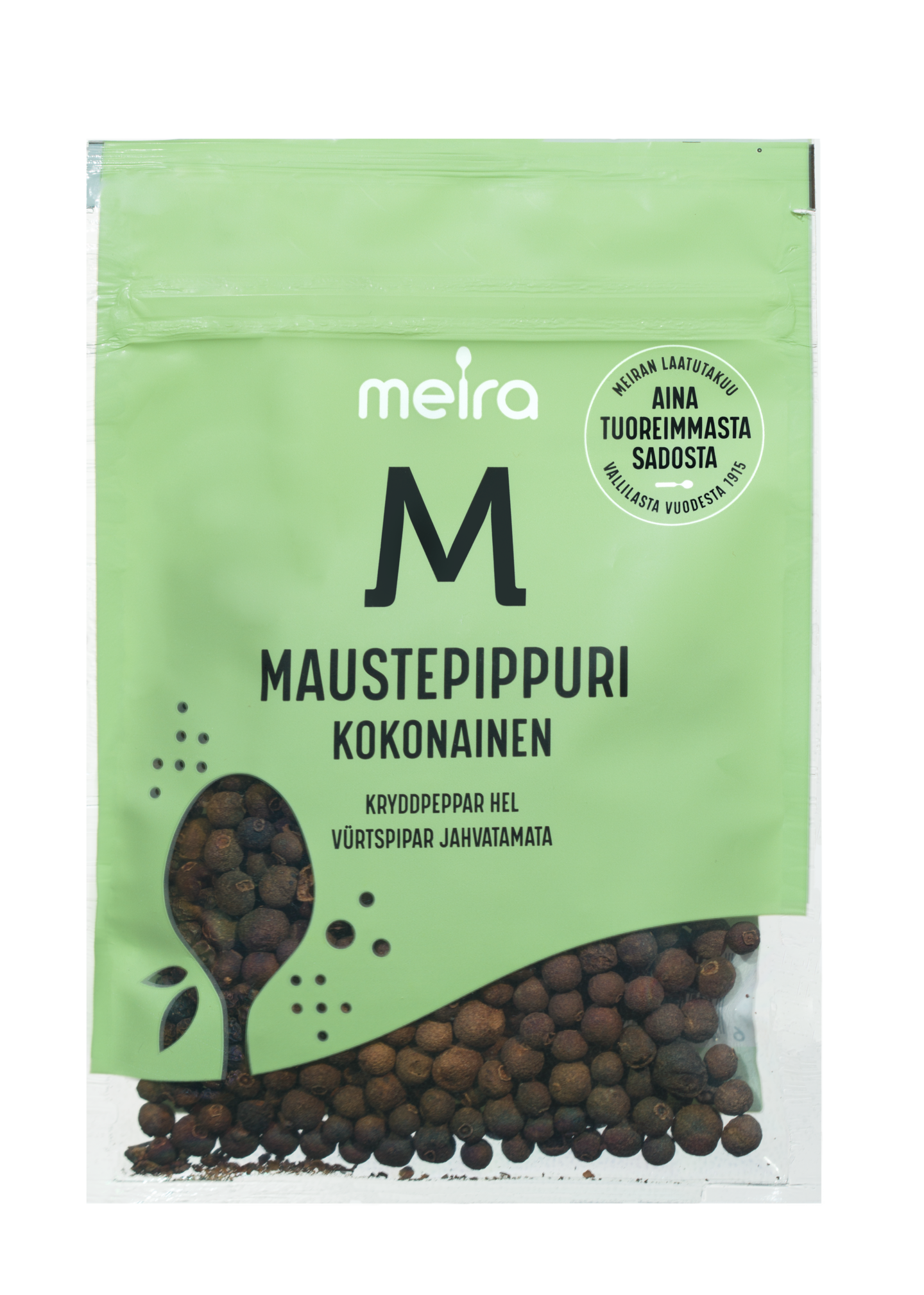 Kokonaiset maustepippurit sopivat liha-, kala- ja kasviskeittojen, keitettävän lihan ja kalan sekä etikkasäilykkeiden maustamiseen. Meiran laatutakuu: Meiran mausteet ovat aina tuoreimmasta sadosta, jolloin kaikki luonnolliset makuaromit ja tuoksut ovat tallella.