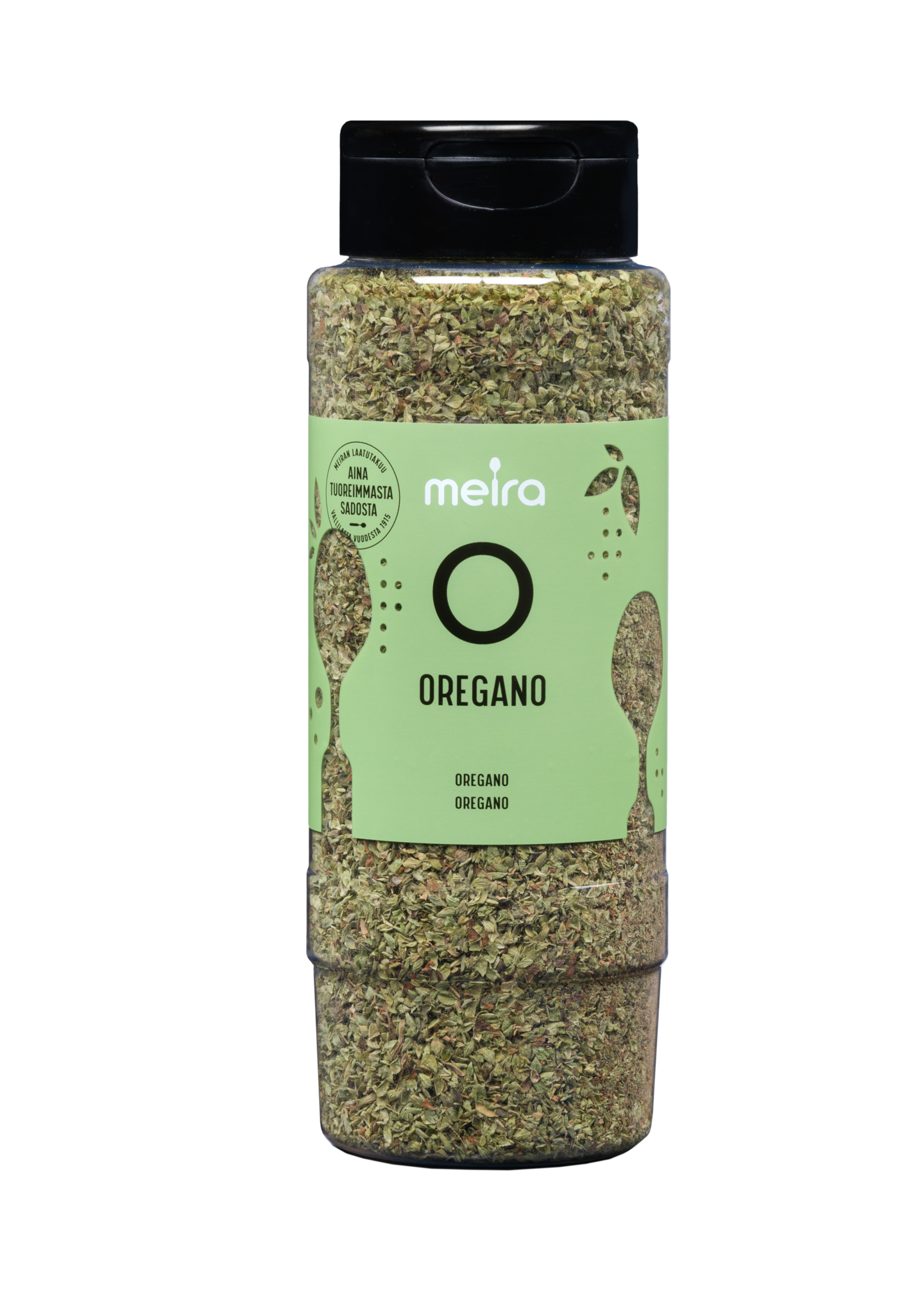 Oregano on voimakkaan mausteinen yrtti. Se sopii pizzojen, italialaisten ja kreikkalaisten ruokien, kasvisten ja lihapatojen maustamiseen. Meiran laatutakuu: Meiran mausteet ovat aina tuoreimmasta sadosta, jolloin kaikki luonnolliset makuaromit ja tuoksut ovat tallella.