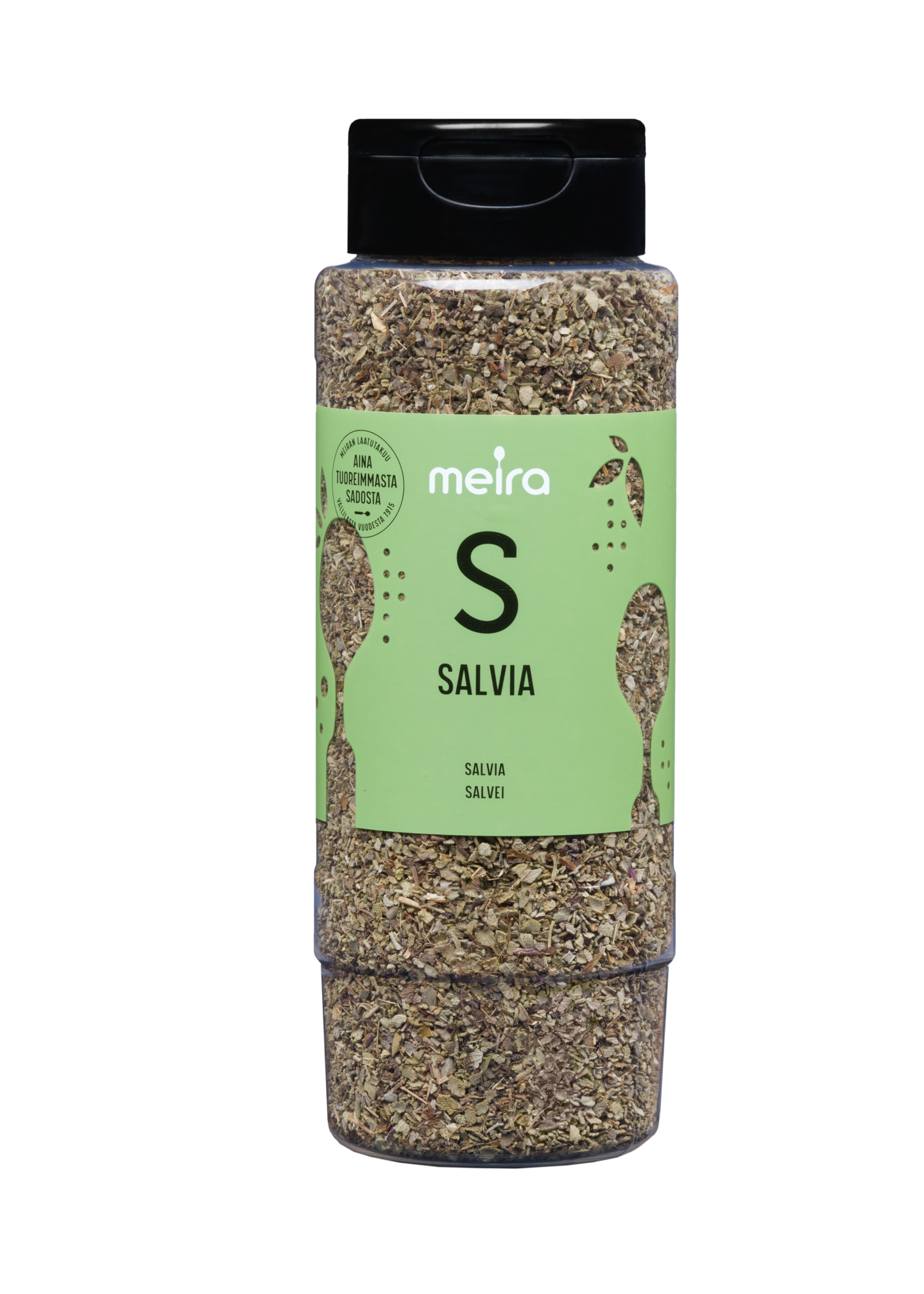 Salvia on melko voimakkaan makuinen yrtti. Se sopii liha-, maksa-, riista-, kasvis- ja sieniruokien maustamiseen. Meiran laatutakuu: Meiran mausteet ovat aina tuoreimmasta sadosta, jolloin kaikki luonnolliset makuaromit ja tuoksut ovat tallella.