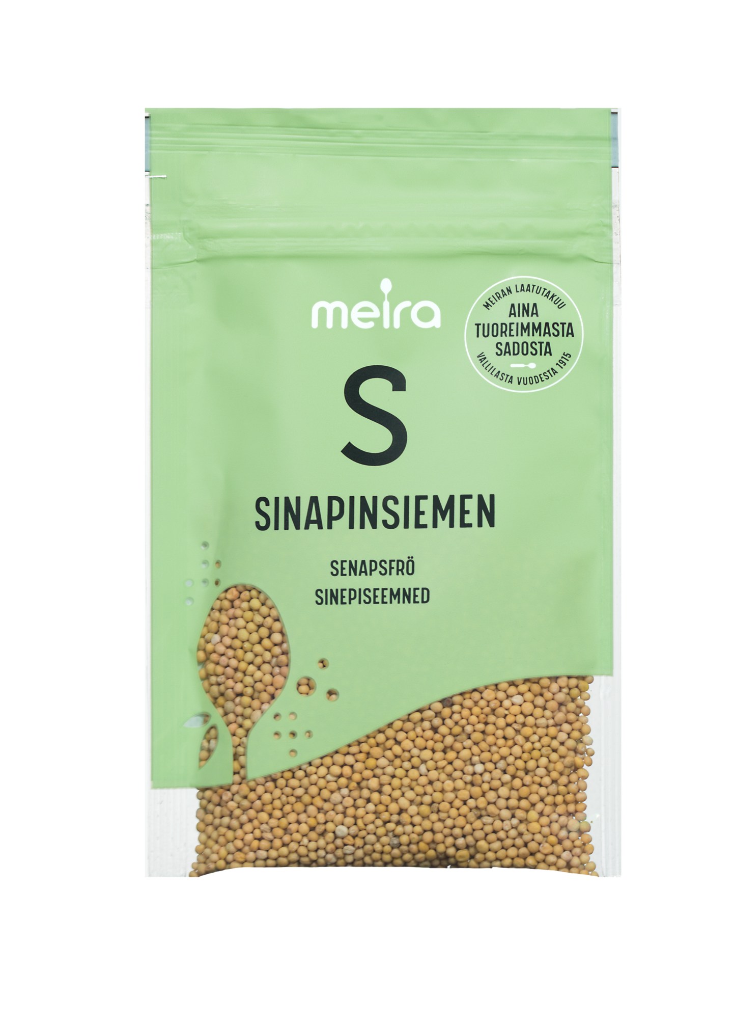Sinapinsiemeniä käytetään etikkasäilykkeiden ja maustekalojen liemien maustamiseen. Meiran laatutakuu: Meiran mausteet ovat aina tuoreimmasta sadosta, jolloin kaikki luonnolliset makuaromit ja tuoksut ovat tallella.
