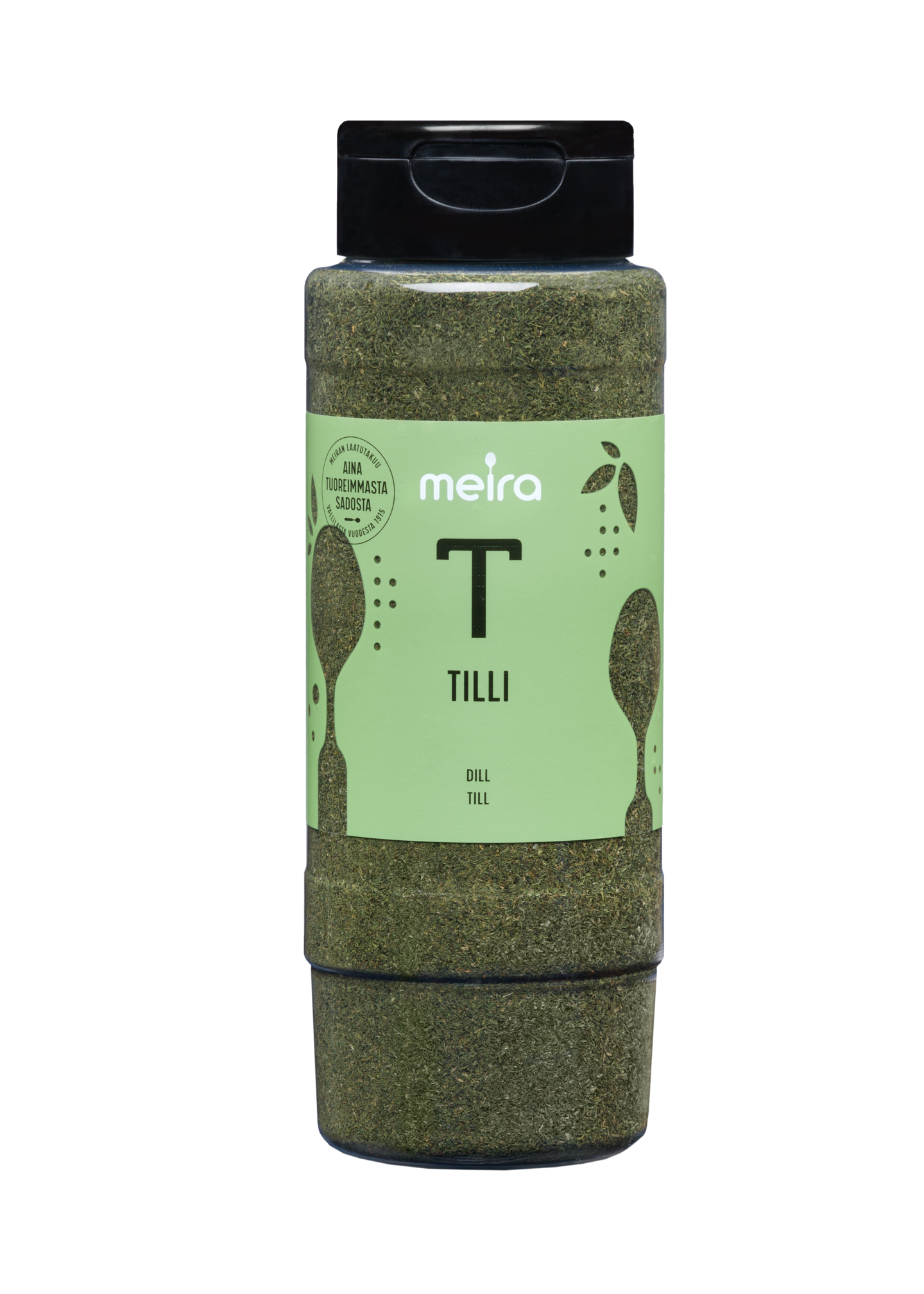 Kuivattua tilliä käytetään tuoreen tillin tavoin kala- ja kasvisruokien, lihakastikkeiden ja salaattien maustamiseen. Meiran laatutakuu: Meiran mausteet ovat aina tuoreimmasta sadosta, jolloin kaikki luonnolliset makuaromit ja tuoksut ovat tallella.