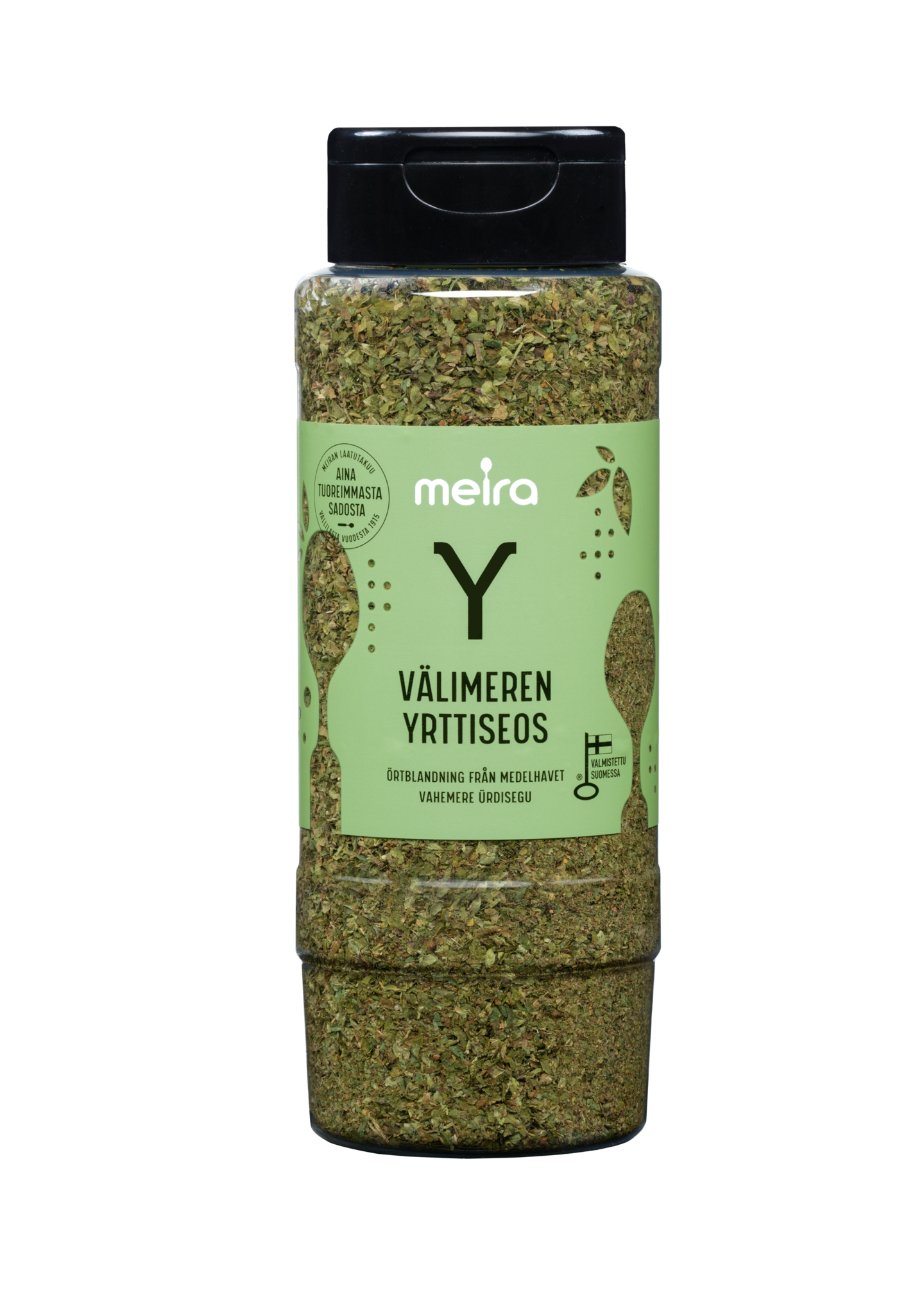 GluteenitonVälimeren yrttiseos sopii erilaisten kasvis- ja liharuokien maustamiseen. Meiran laatutakuu: Meiran mausteet ovat aina tuoreimmasta sadosta, jolloin kaikki luonnolliset makuaromit ja tuoksut ovat tallella.