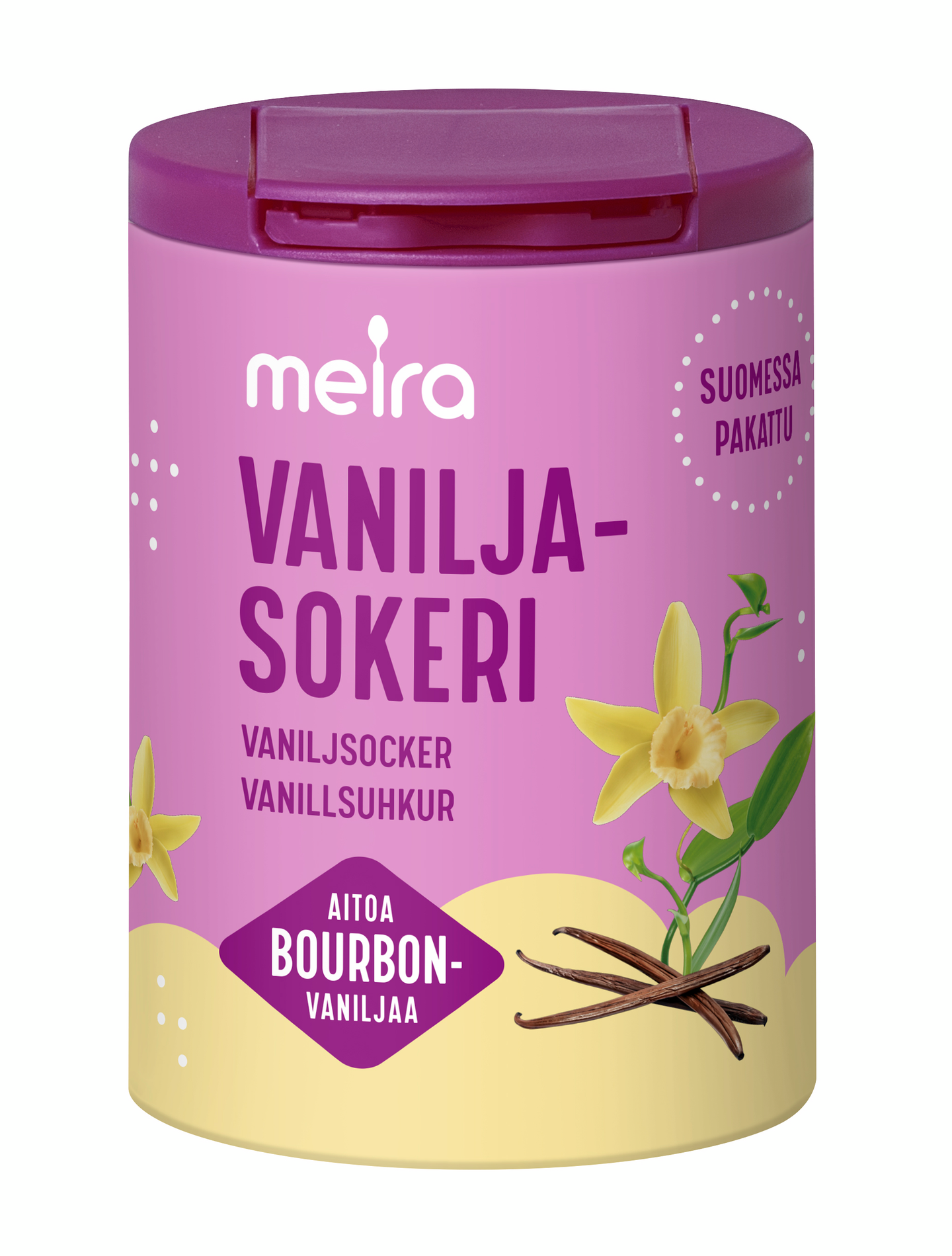 Vaniljasokeria käytetään jälkiruokien, juomien ja leivonnaisten maustamiseen. Meira vaniljasokerin vaaleanruskea väri on peräisin vaniljauutteesta. Sokerin ruskeat pisteet ovat peräisin vaniljatangosta ja -siemenistä. Meira vaniljasokerin vanilja tulee Bourbon-alueelta Madagaskarin saarelta, ja sokeriin ei ole lisätty mitään keinotekoisia aromeja.